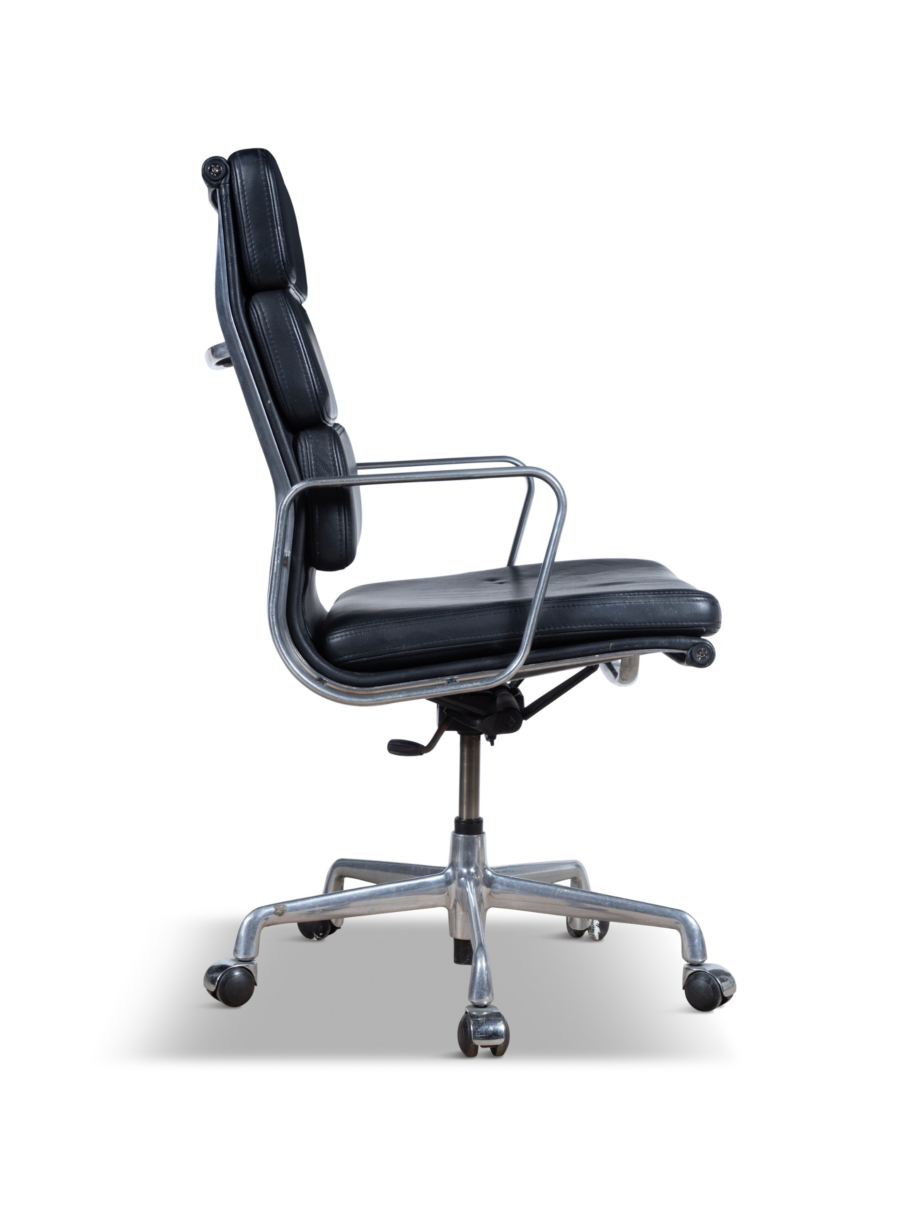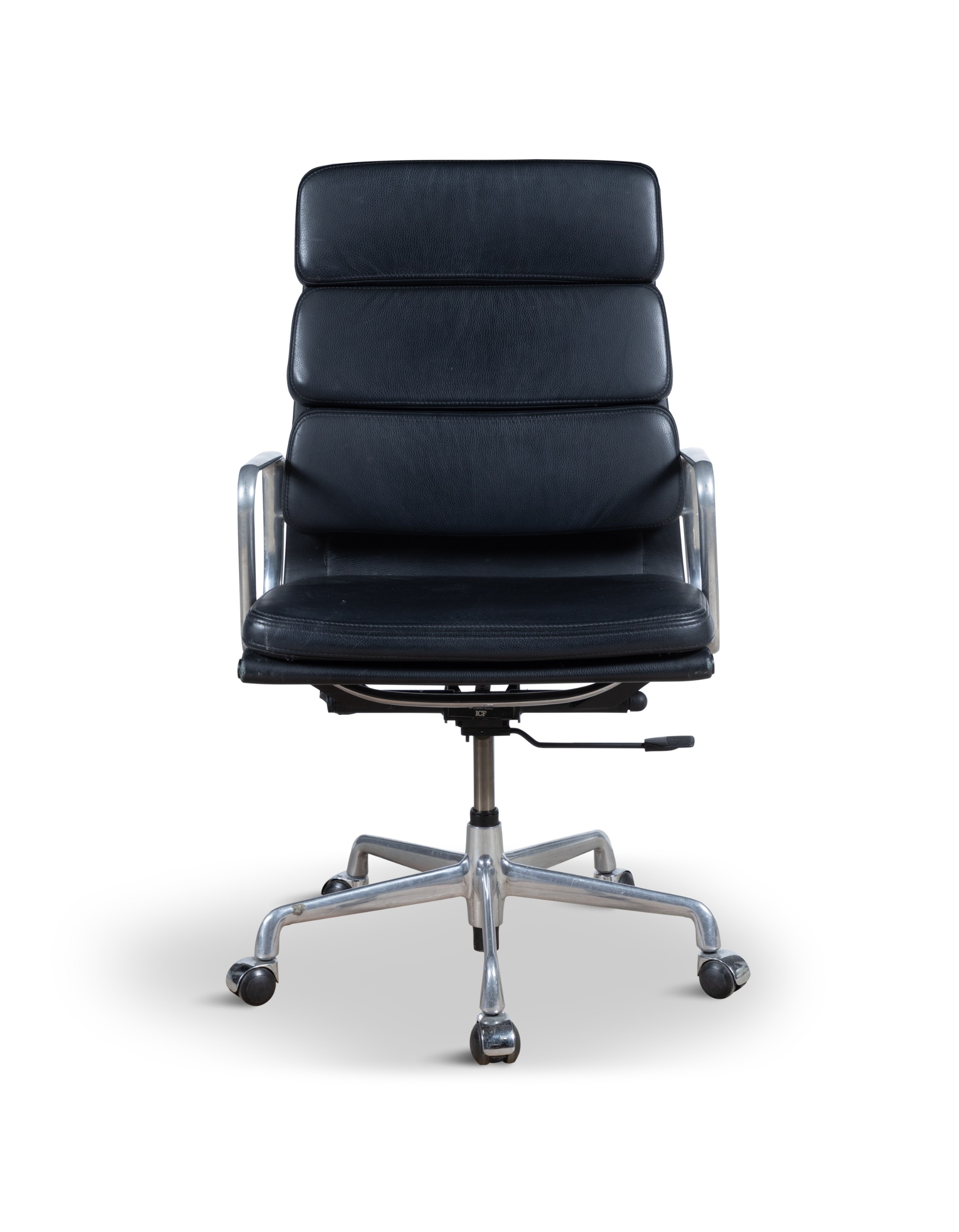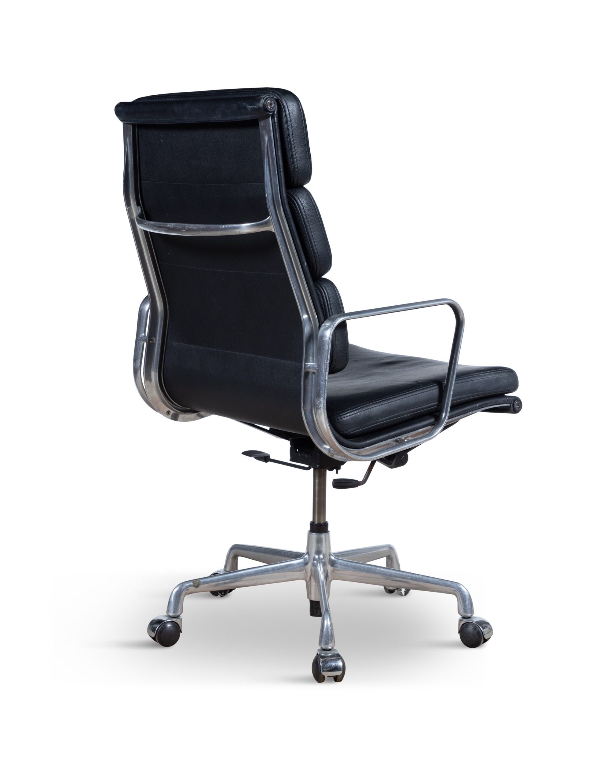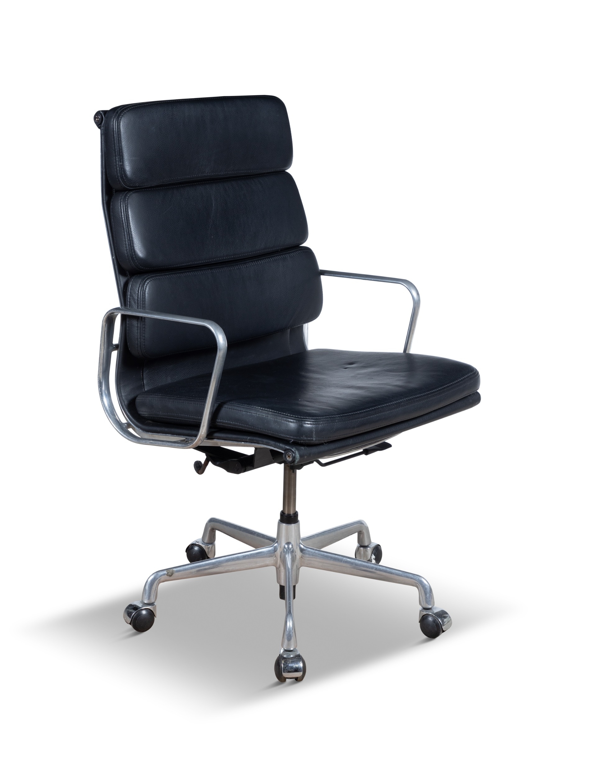 EAMES A soft pad 'Executive' chair by Eames. Leather and chrome. By ICF. With maker's label. 59.5 x 53 x 105cm (H)