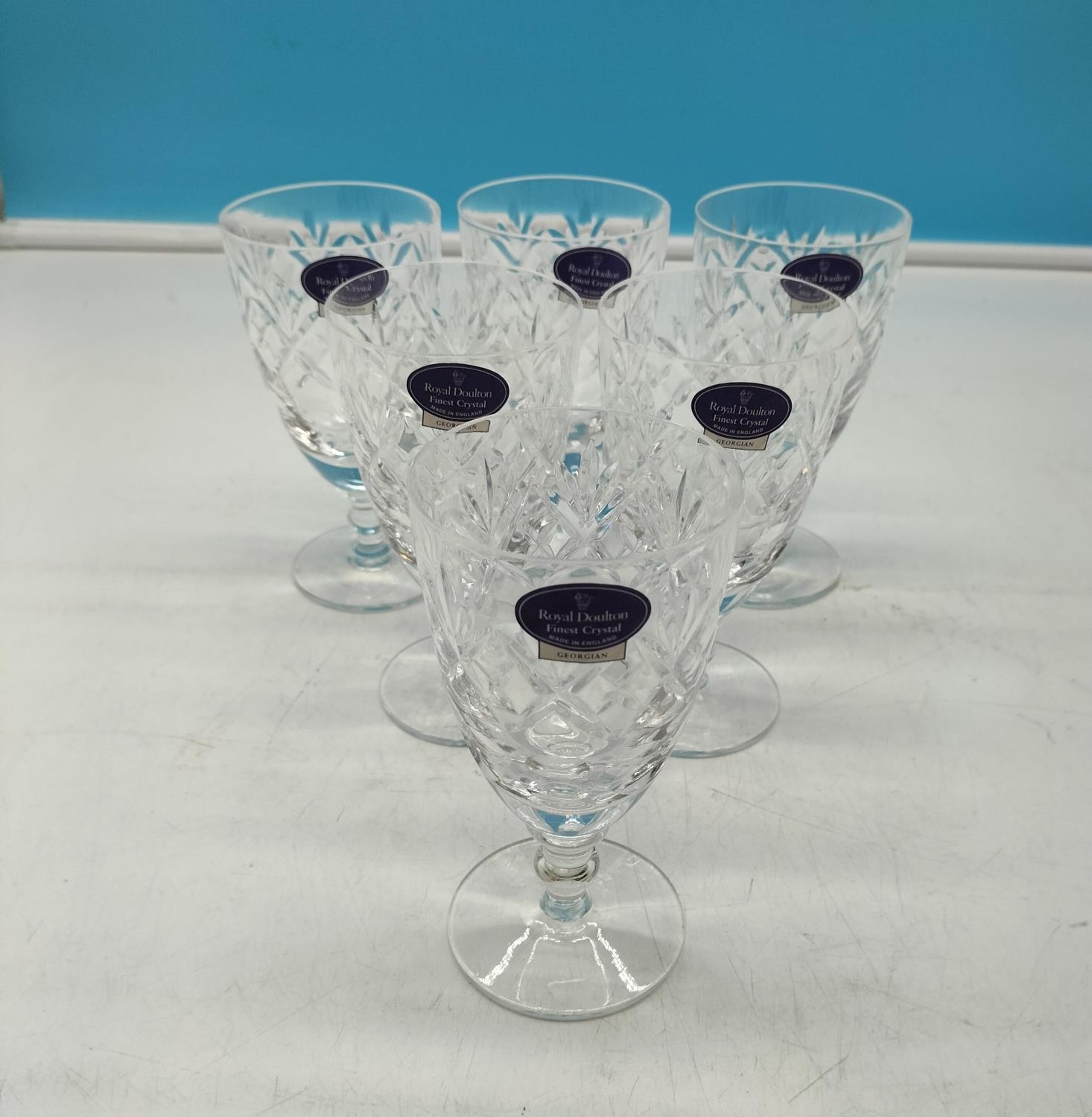 Royal Doulton Finest Crystal Set of 6 13cm Wine Glasses in the 'Georgian' Pattern.
