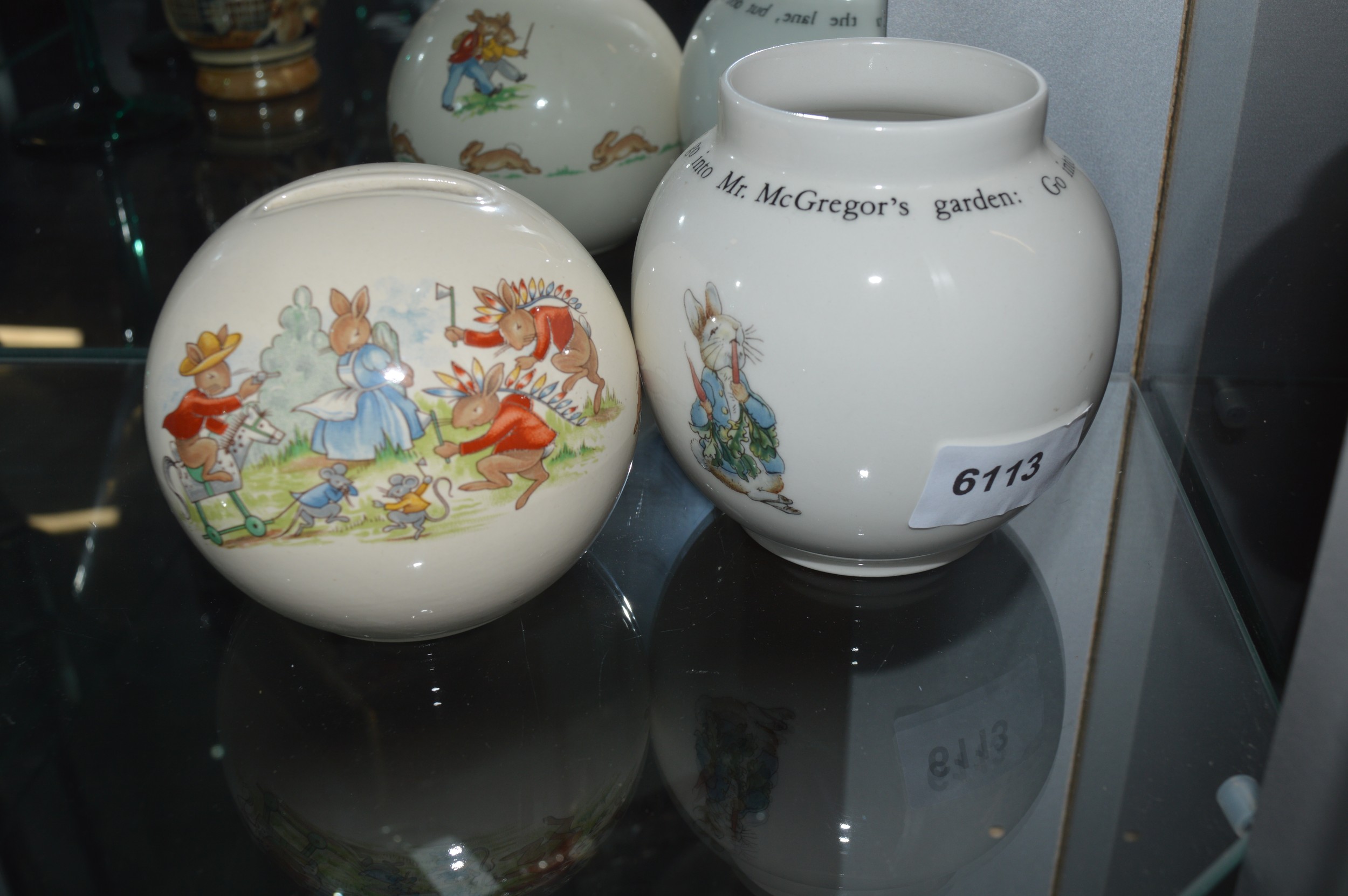 A Doulton Bunnykins Money Box (with Stopper) Plus a Wedgwood Bunnykins Peter Rabbit Bowl