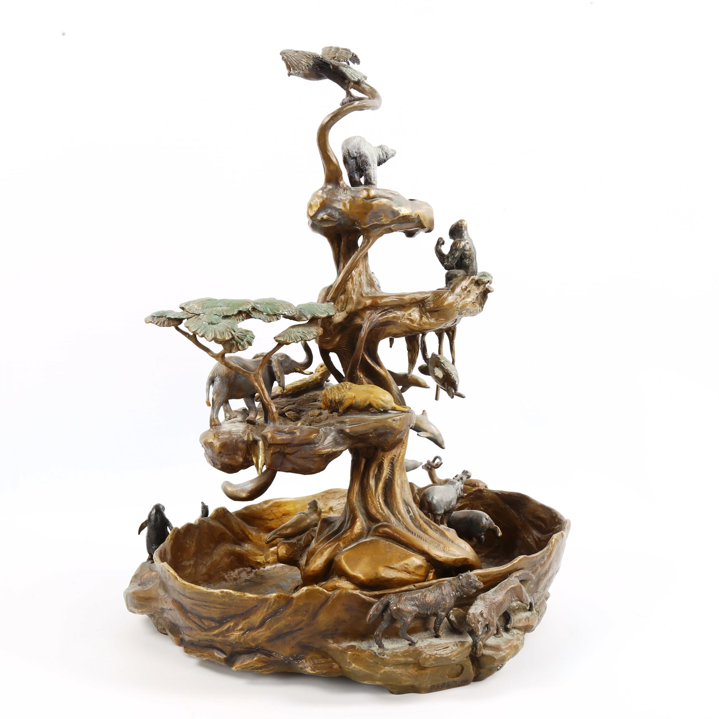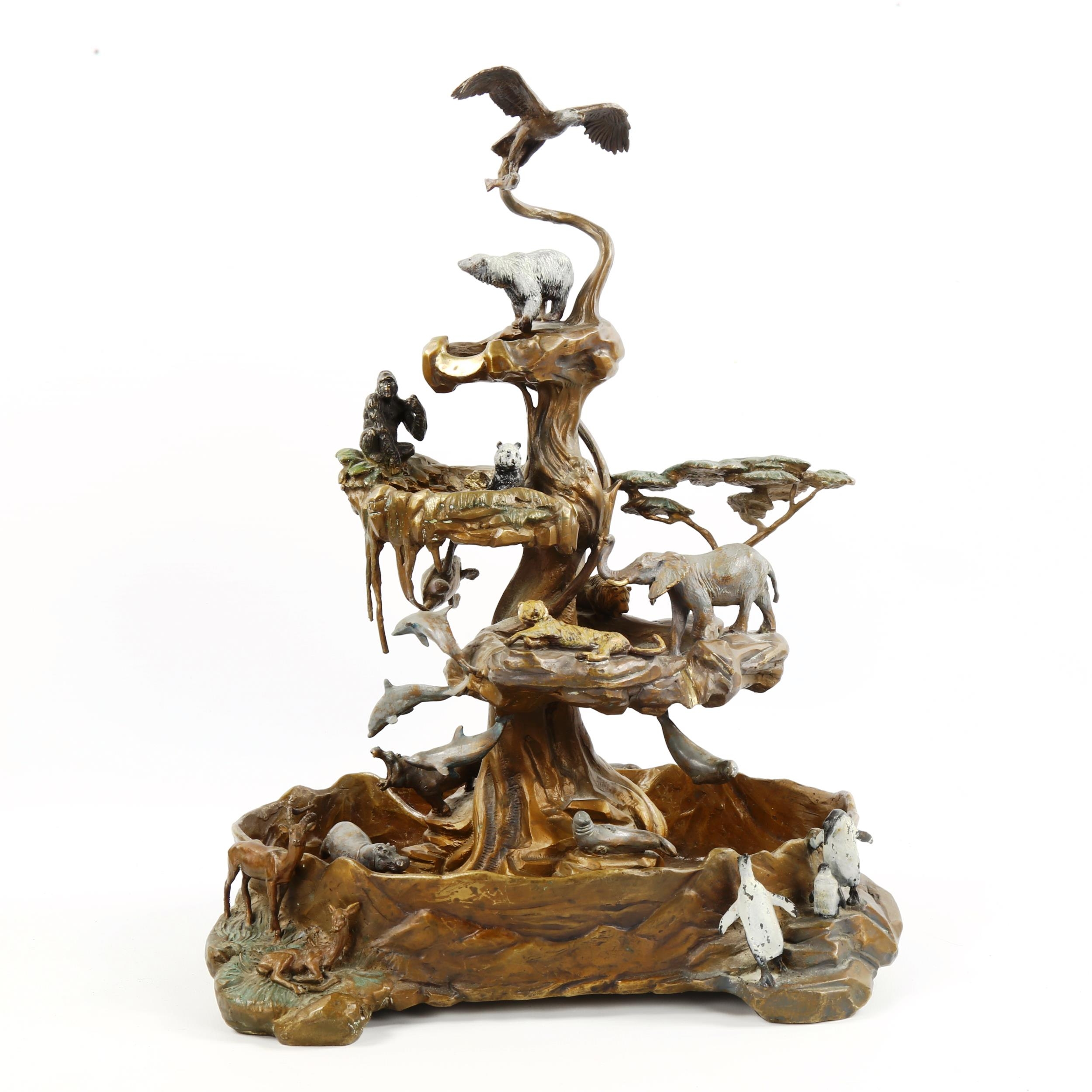 A Vienna style cold painted bronze indoor water feature, with cascading falls, foundry marks at base 0509/2500 inscribed to both pieces 261, height 40cm
