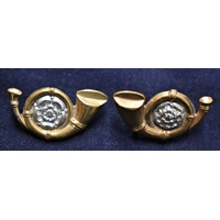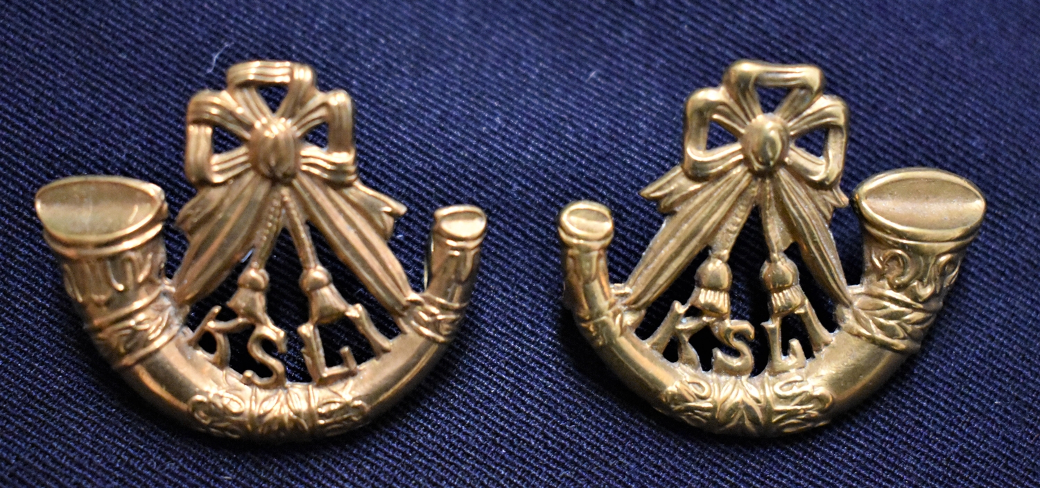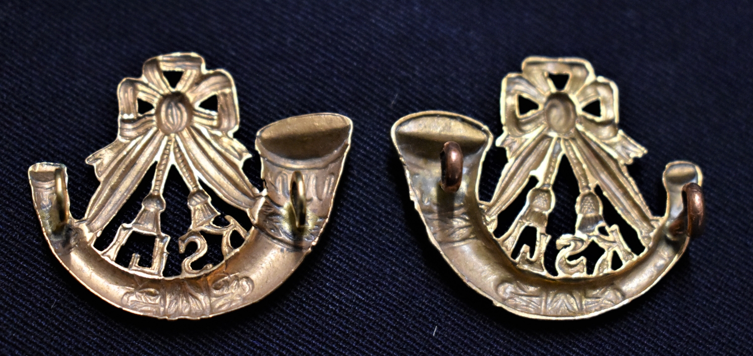 King's Own Shropshire Light Infantry Officers Collar Badges (Gilding-metal), a nice facing pair