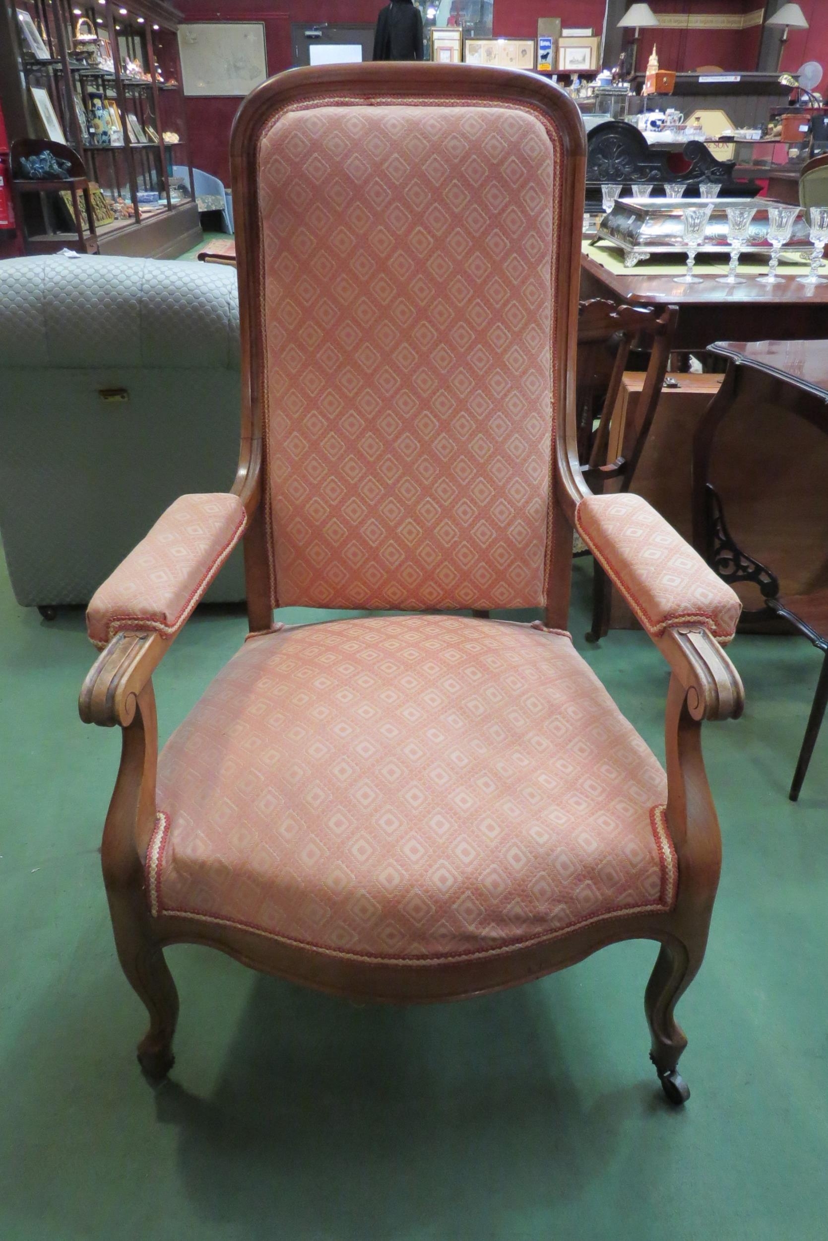 A Circa 1900 American armchair, scroll arms on castors (R) £25