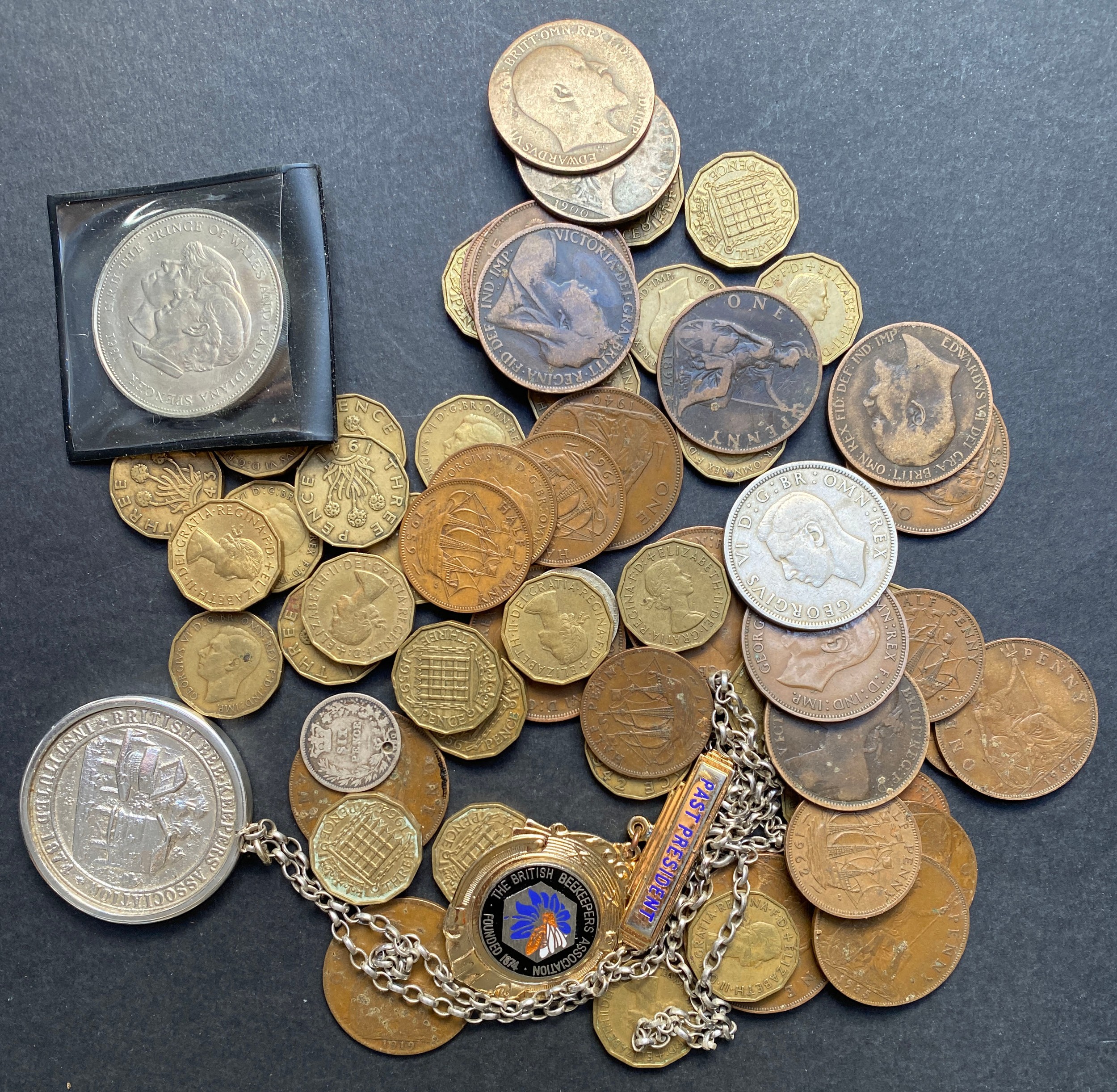 A small group of UK circulated Twentieth Century 1d’s and 3ds, plus two Beekeepers Association medals (1 silver)