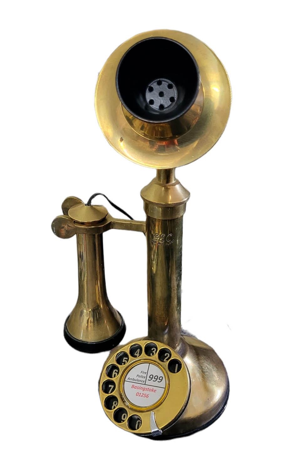 A VINTAGE BRASS & BAKELITE STICK TELEPHONE