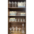 A Waterford crystal 'Sheila' pattern part suite of drinking glasses comprising decanter, six boxed hock glasses, six boxed sherry glasses, six boxed liqueur glasses, six boxed 5oz tumblers and six white wine glasses