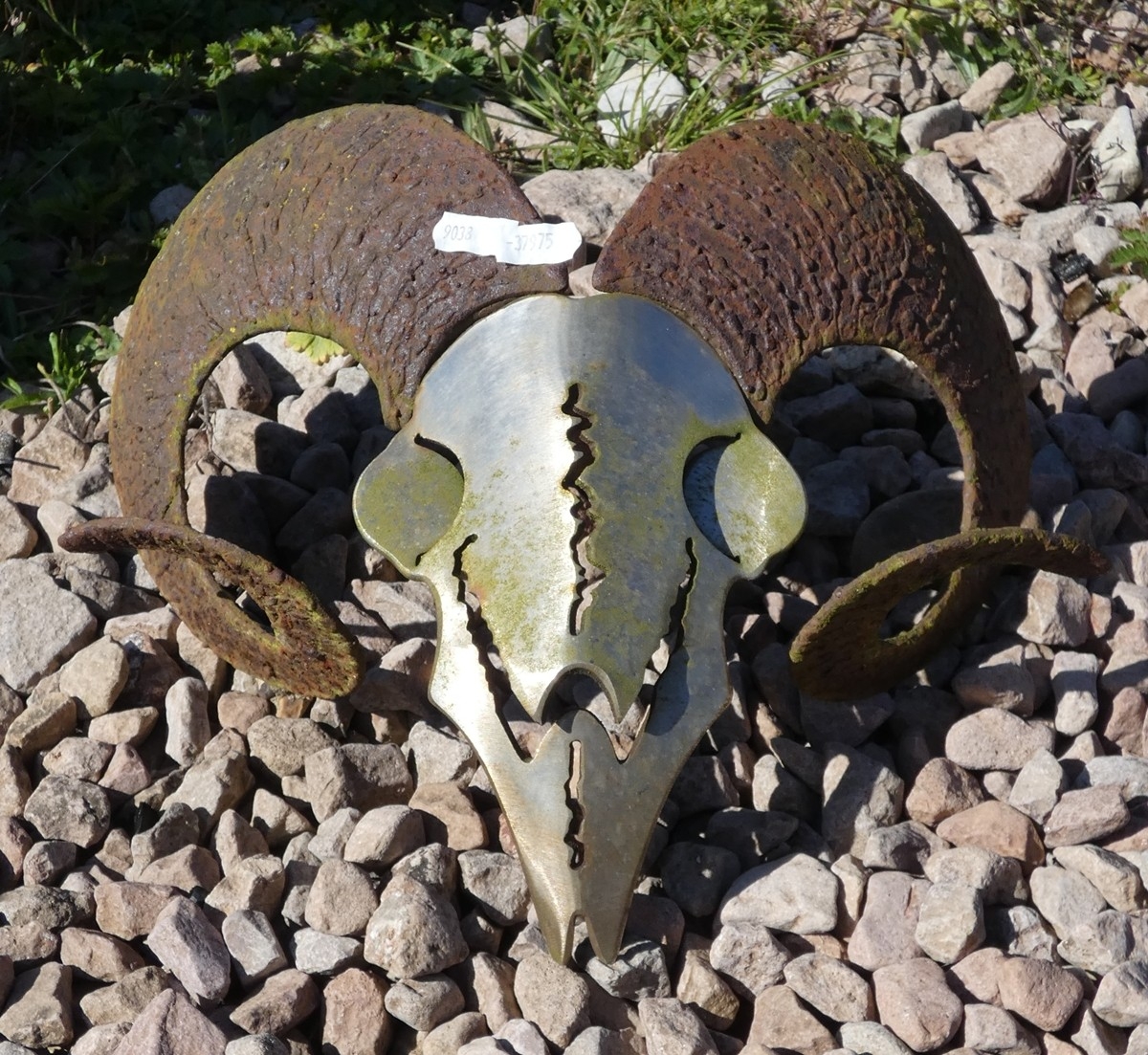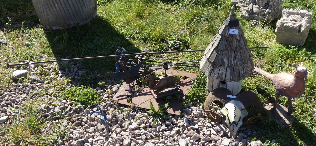 Collection of Garden Ornaments to include Rams Head signed Dan Day