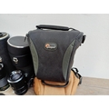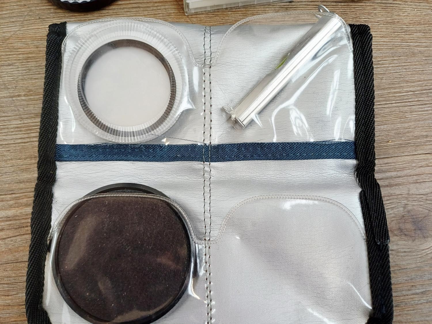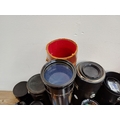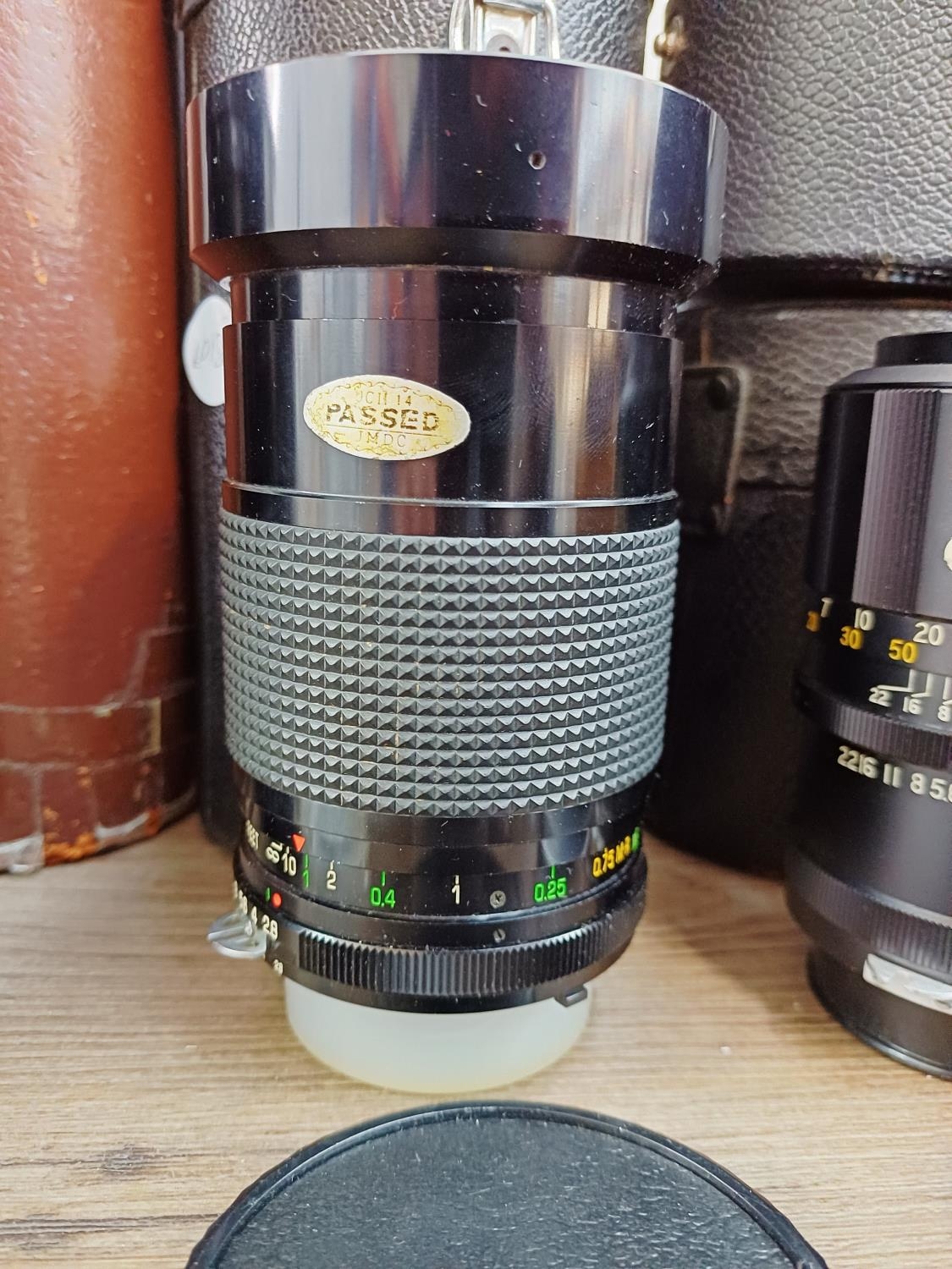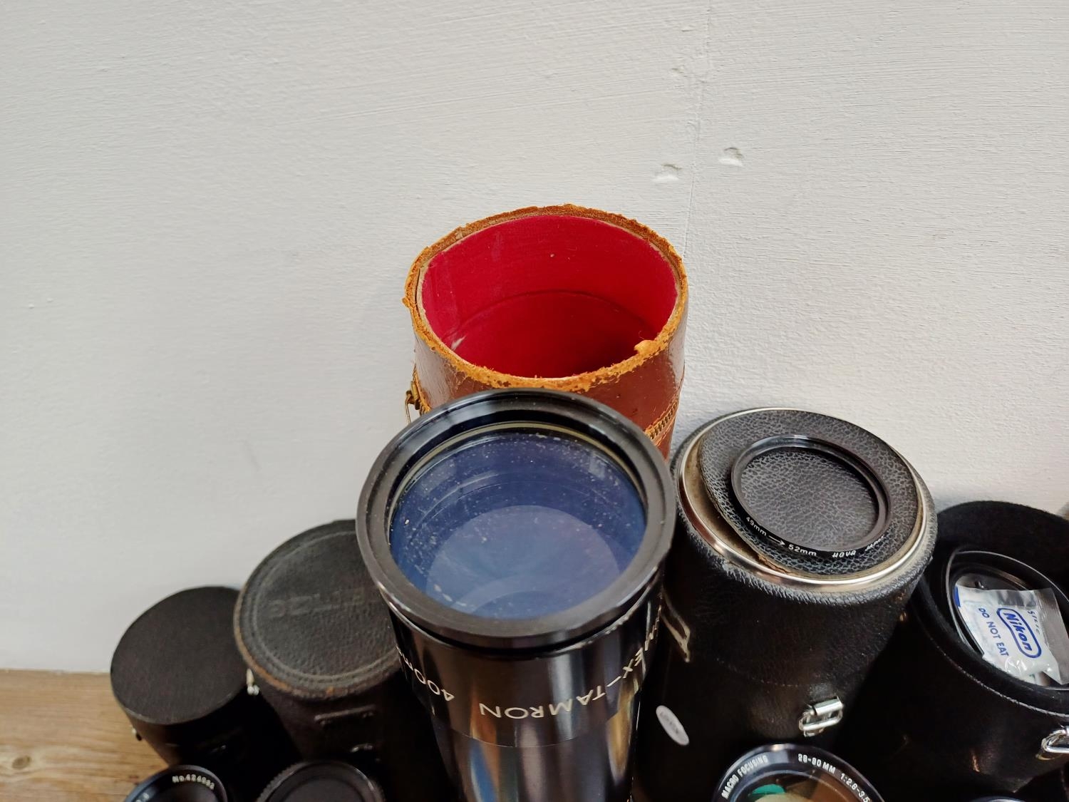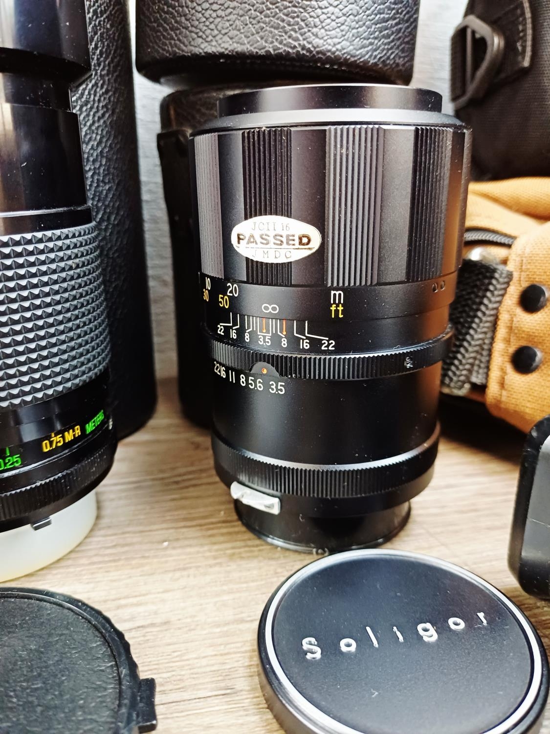 Five cased lenses for Nikon to include Soligor Tele-Auto 1:3.5 135mm, Vivitar Series 1 1:2.8-3.5 28-90mm macro focusing zoom, Vivitar MC Tele Converter, Unitor 1:2.8 35mm auto wide etc. together with two boxed Nikon FM eyepiece accessories, filters, Lowepro camera case etc.
