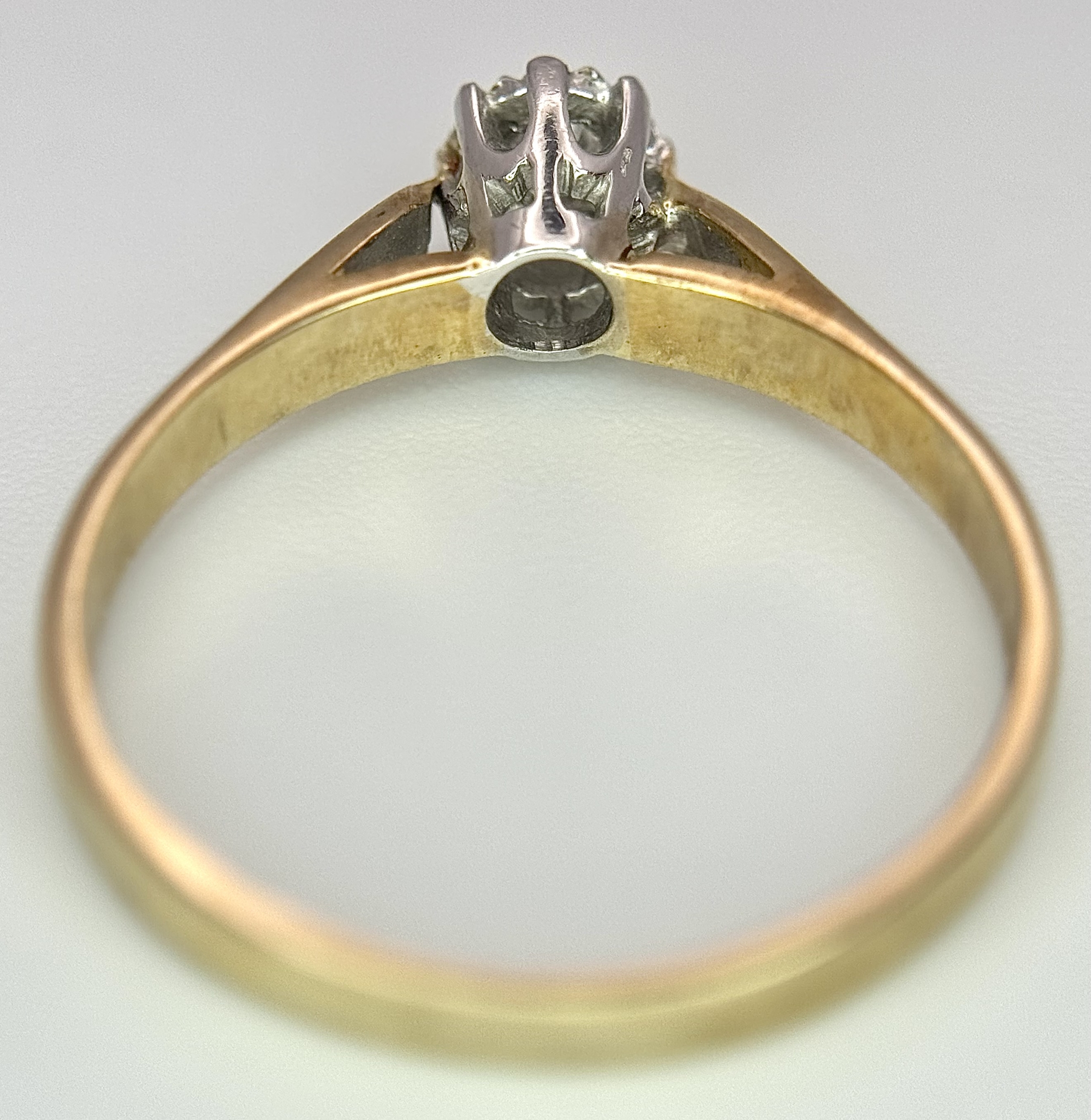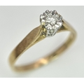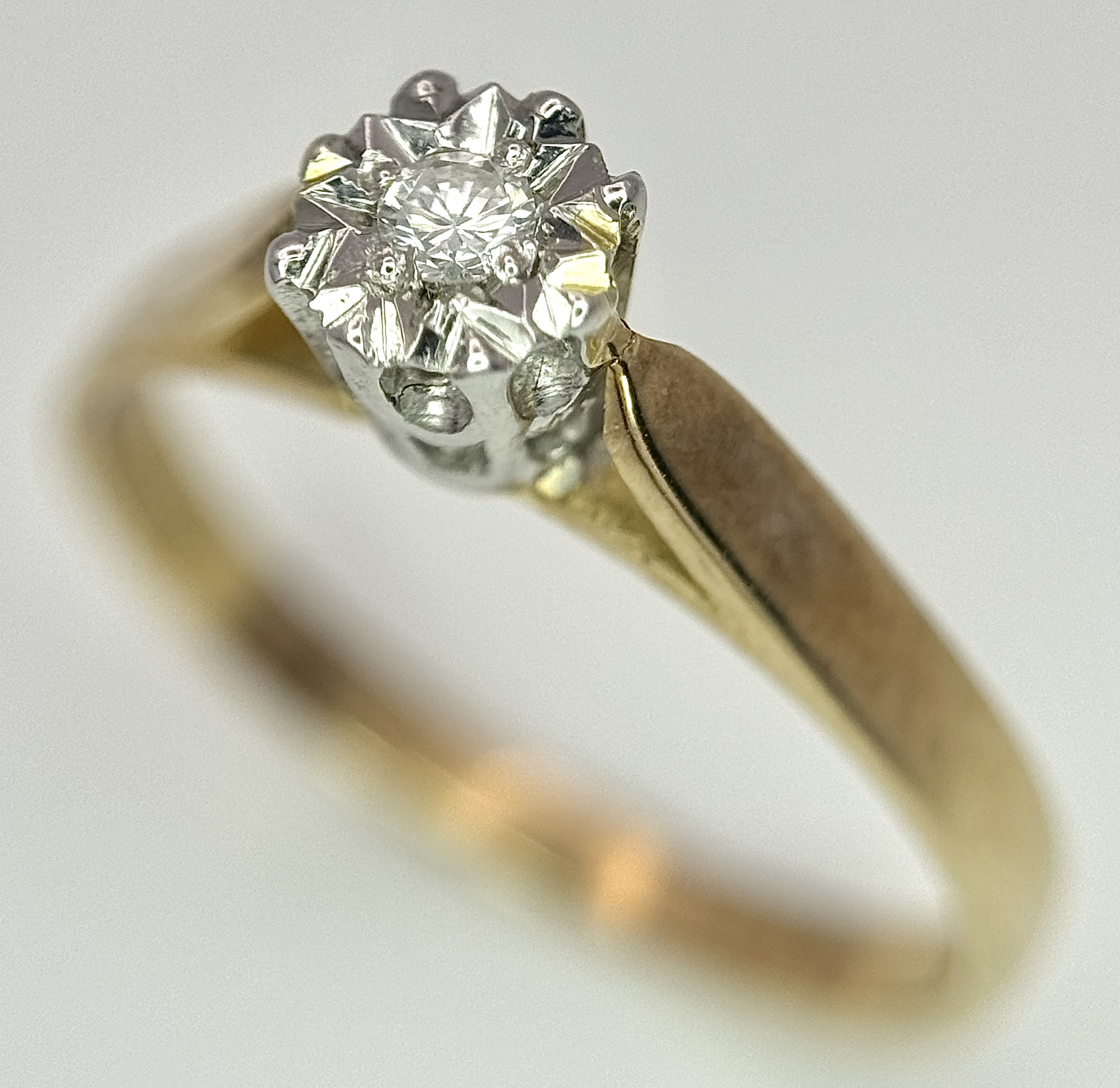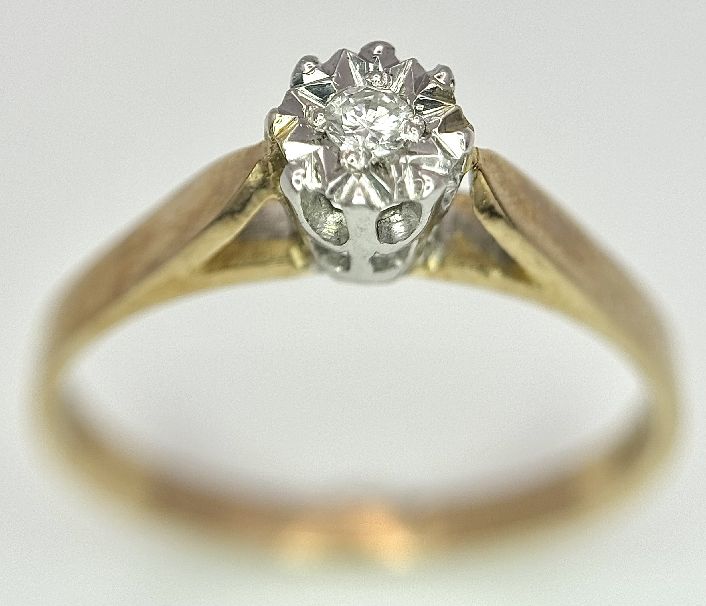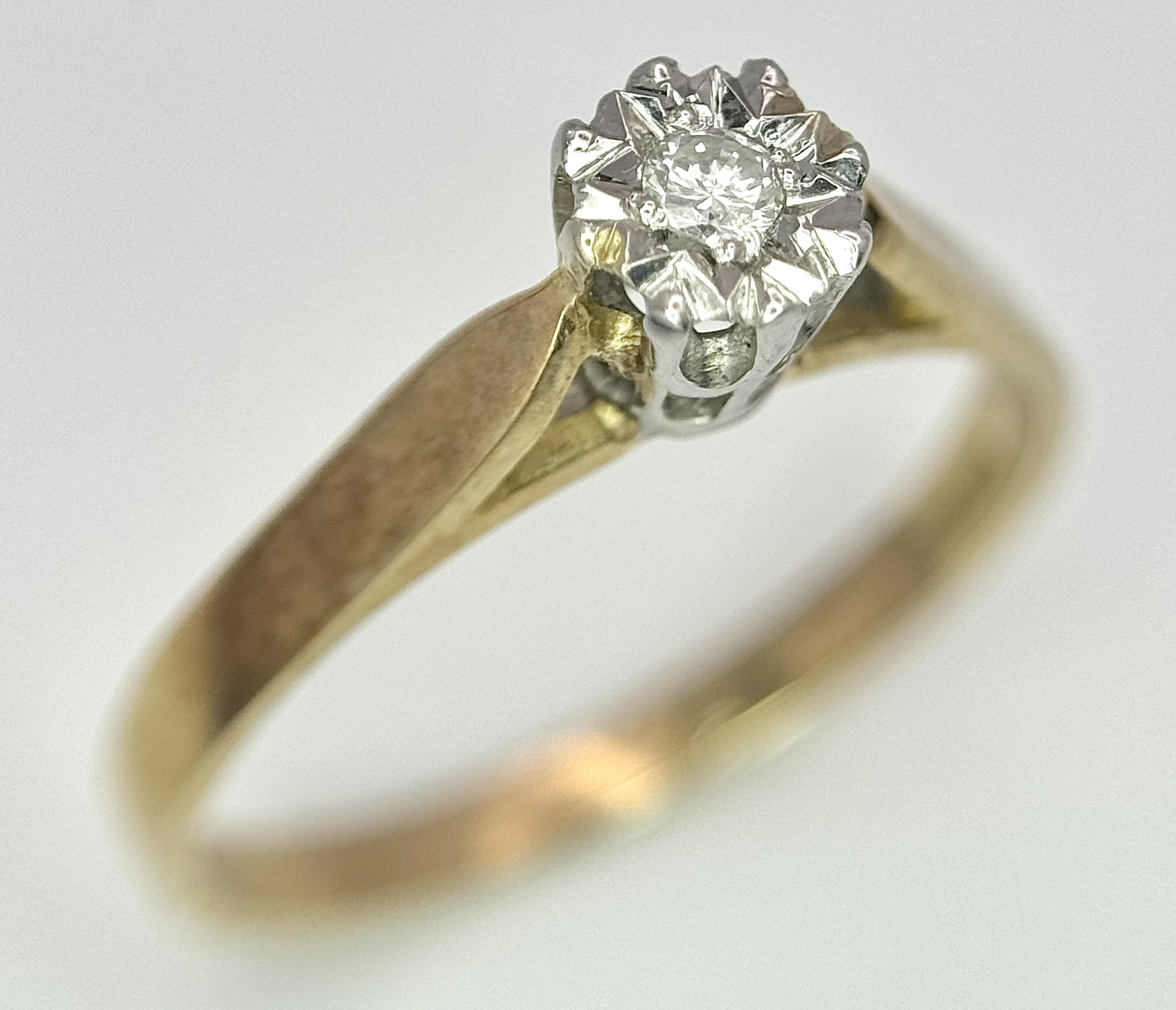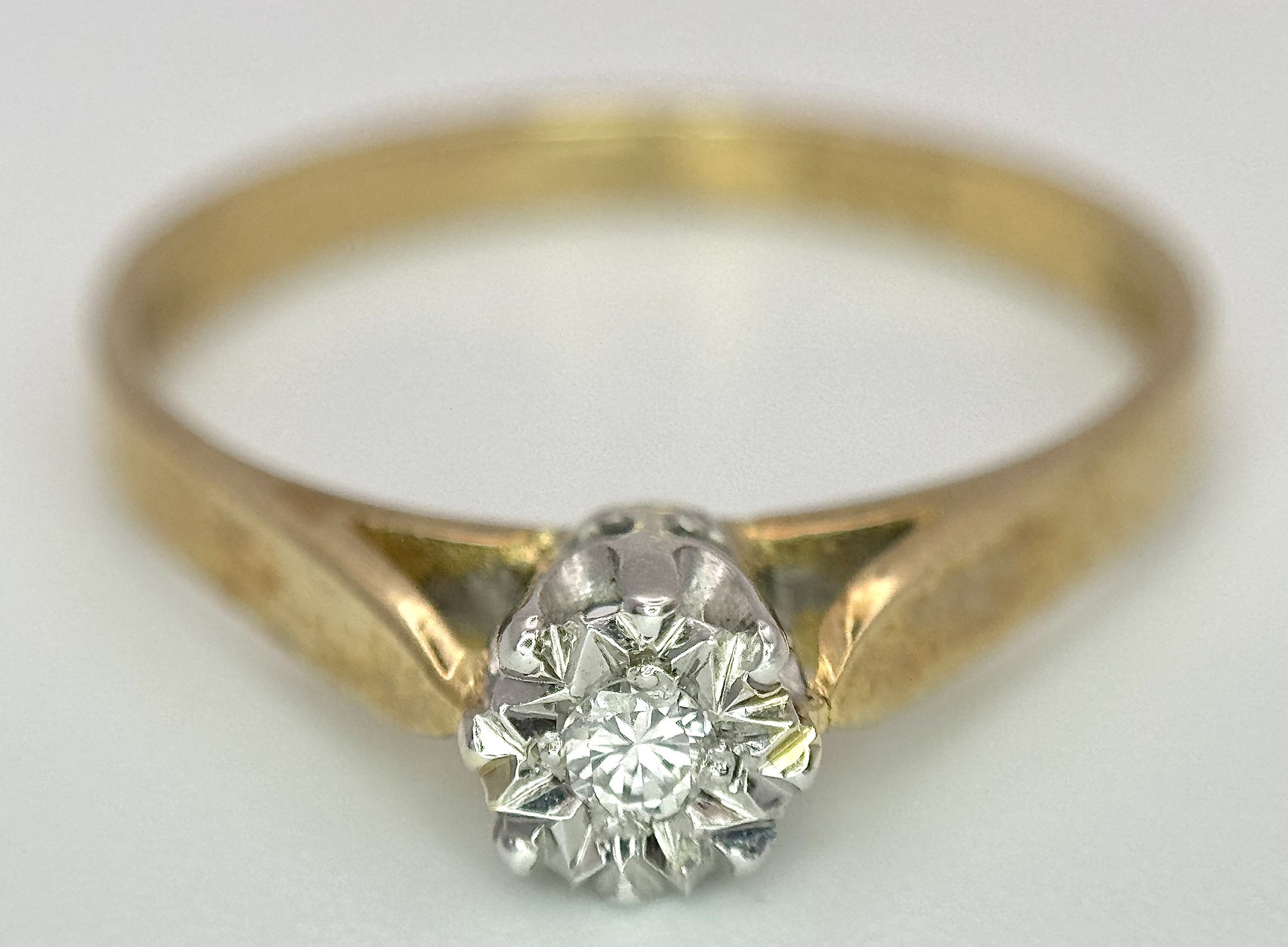 A Vintage 9K Yellow Gold Diamond Solitaire Ring. Size N 1/2. 1.8g.