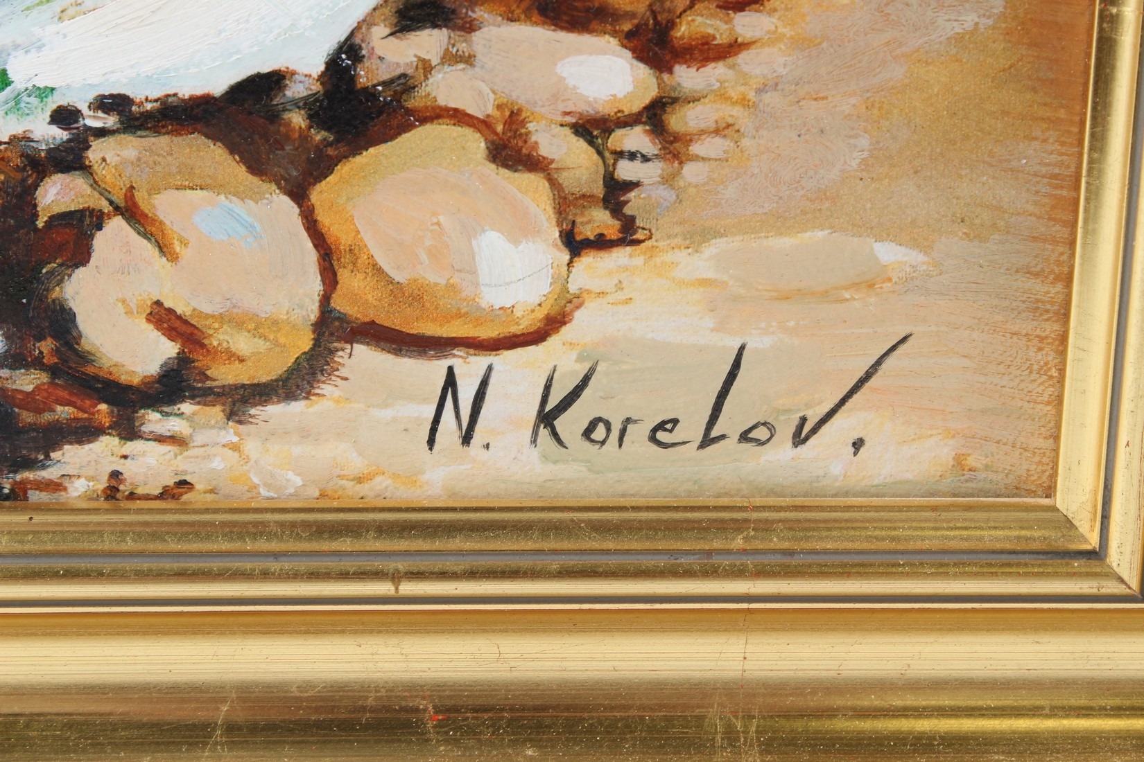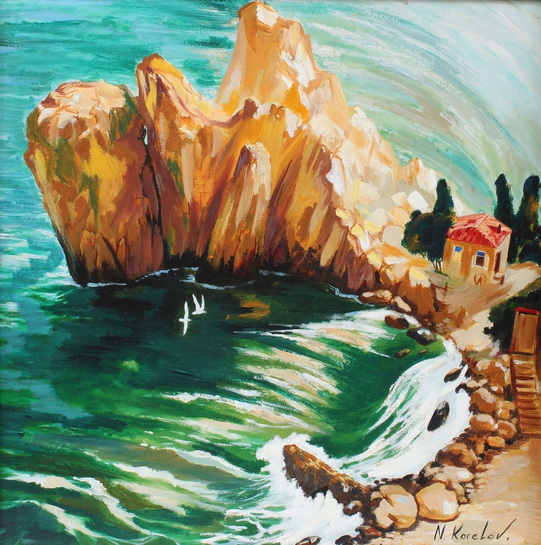 NIKOLAI KORELOV 'Chekov's House' oil on canvas signed 44 x 44cm