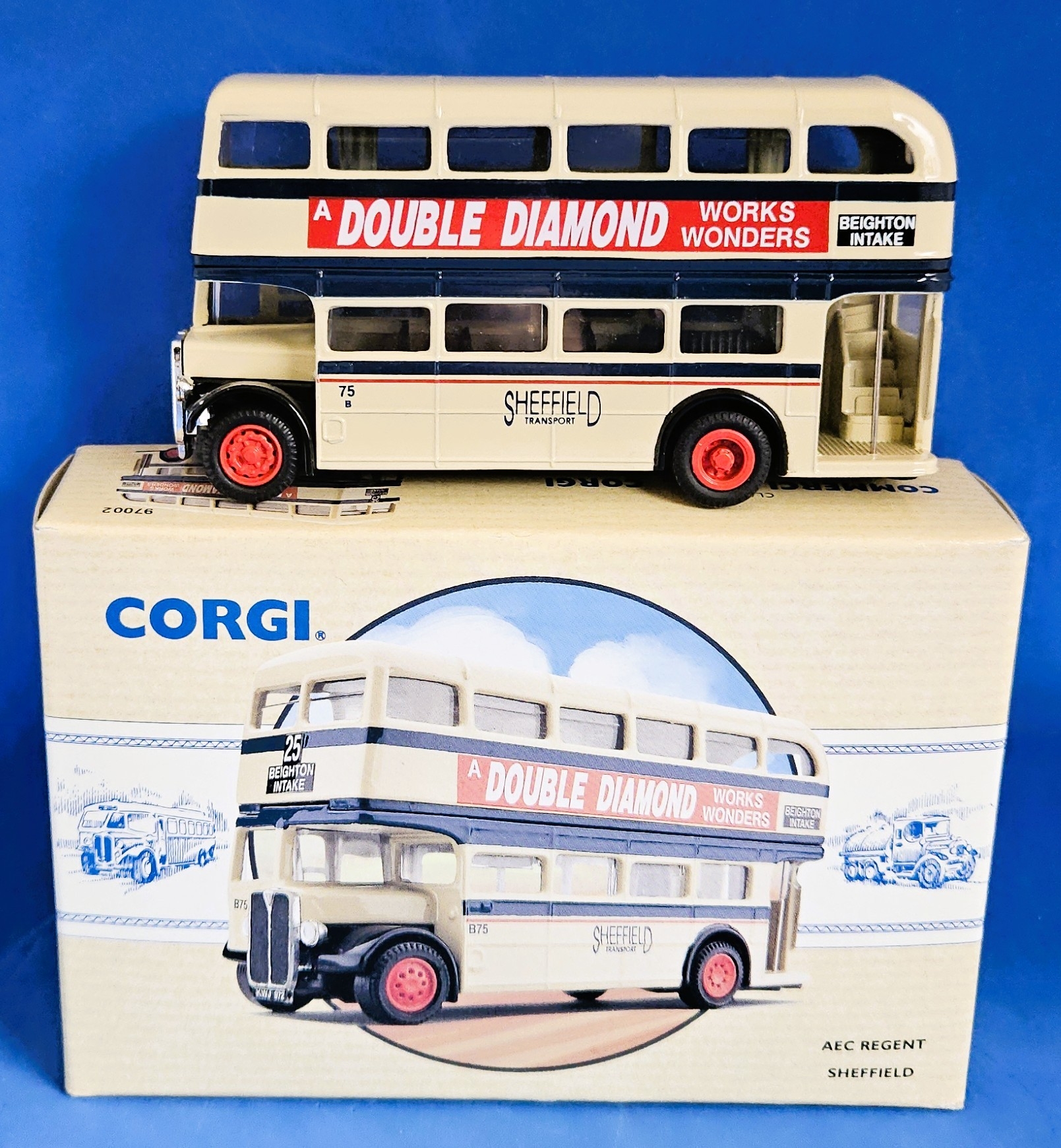 Corgi Bus 'A Double Diamond Work Wonders Sheffield Transport' (Bus no. 25 Beighton Intake) Diecast Model Boxed.