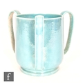 Ruskin Pottery - A lustre glazed tyg vase decorated in an all over blue glaze, impressed mark and dated 1923, height 13cm, S/D.