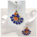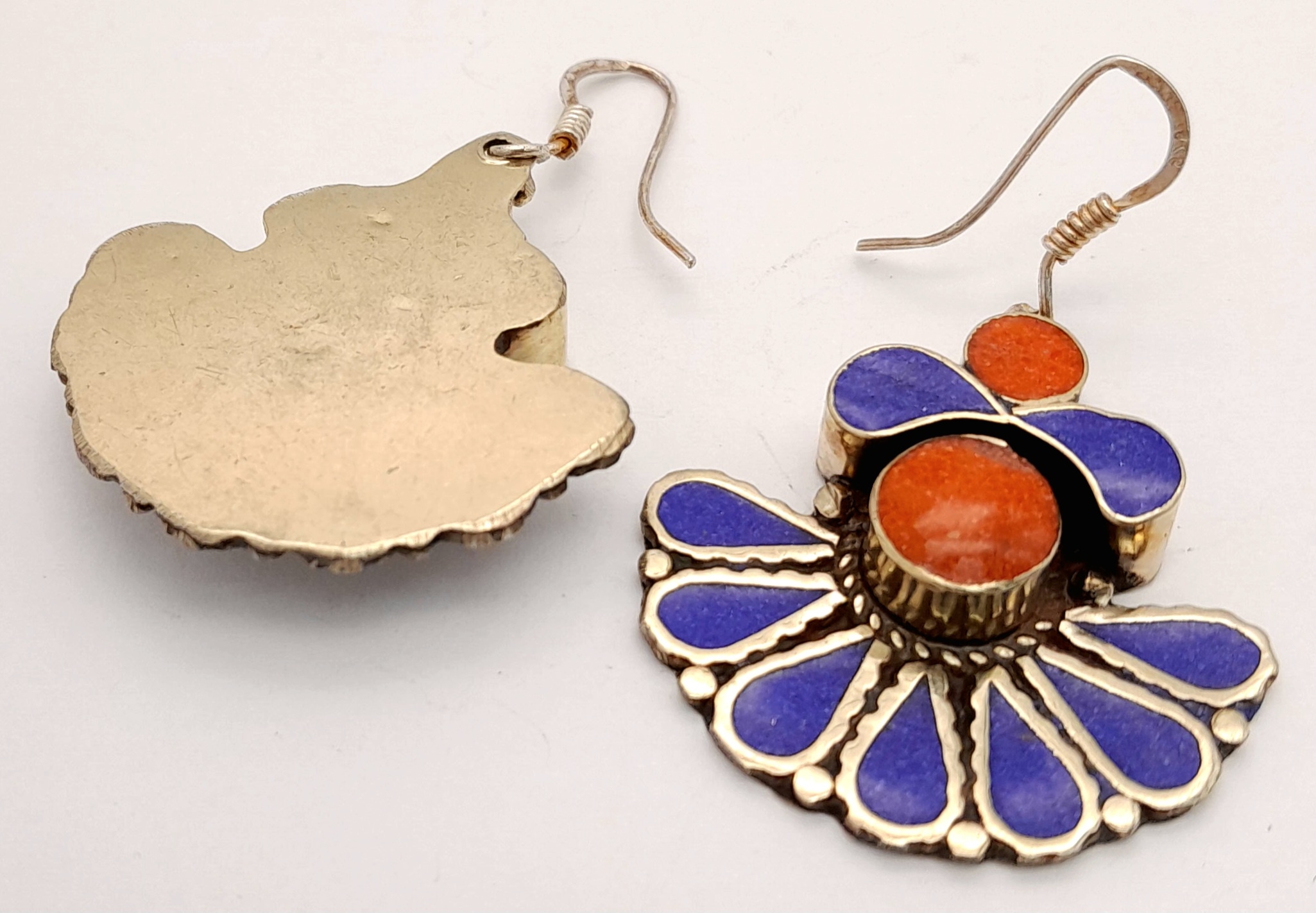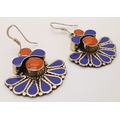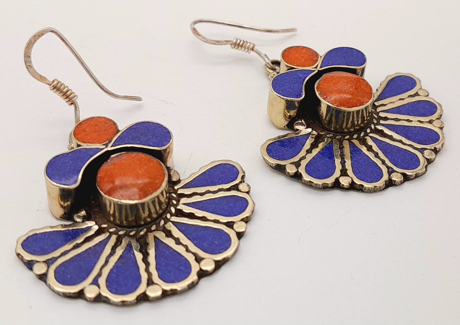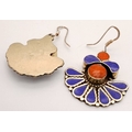 A vintage pair of 925 silver Lapis Lazuli and Coral large drop earrings. Total weight 24.2G.
