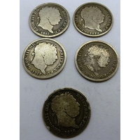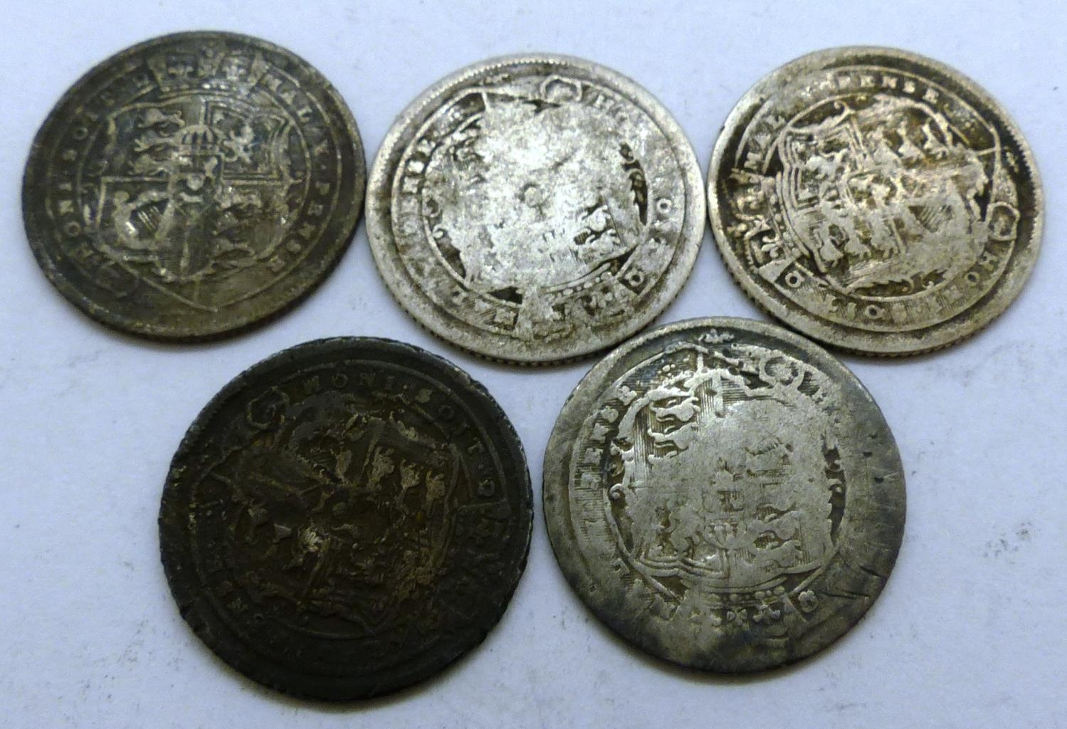 Five early milled silver sixpence. P&P Group 0 (£5+VAT for the first lot and £1+VAT for subsequent lots)