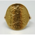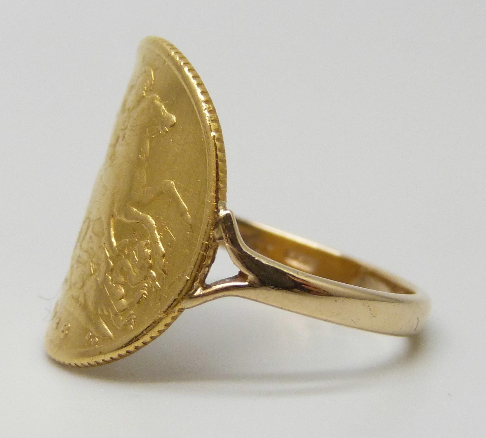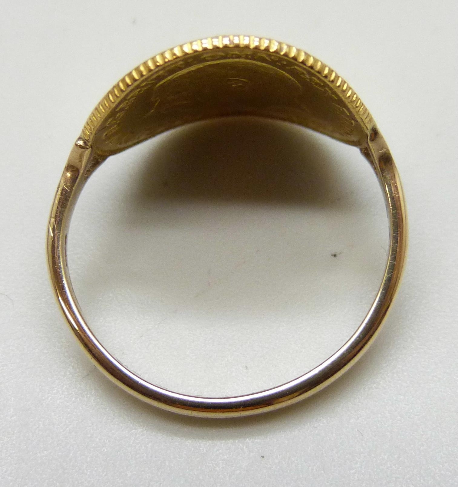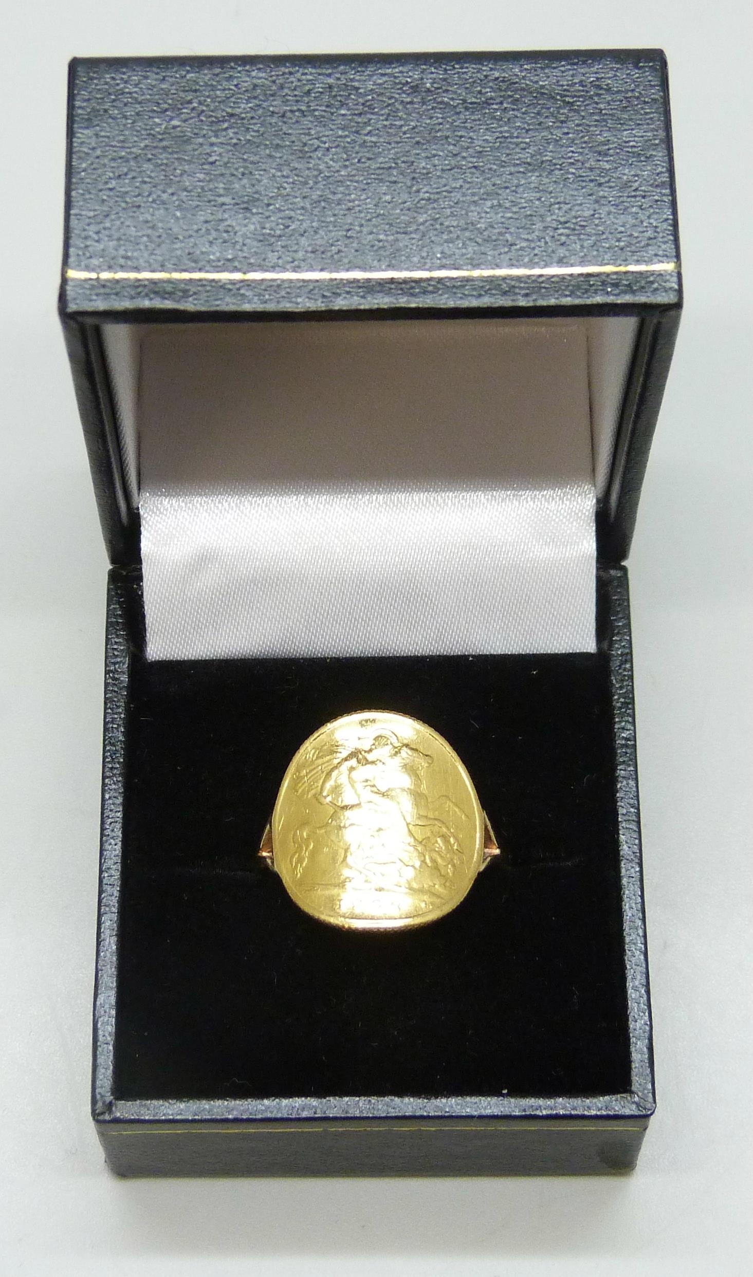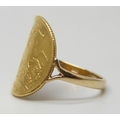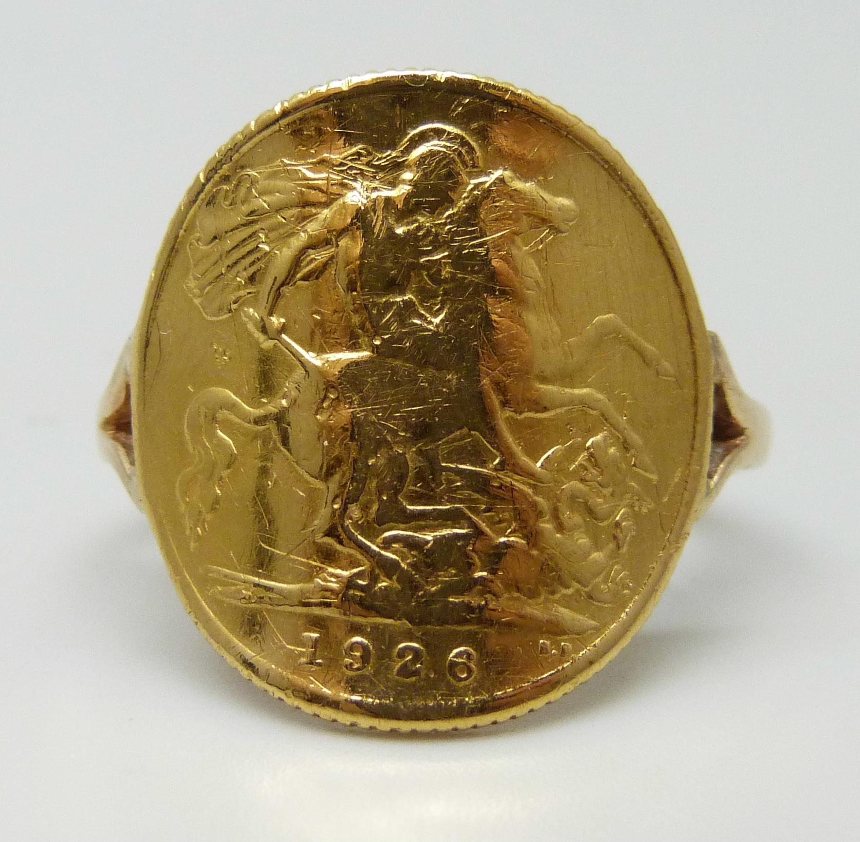 A 9ct gold 1926 half sovereign coin ring, 5.1g, Q