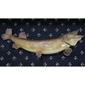 Wall mounted taxidermy exhibit of a pike fish, L: 107 cm. Not available for in-house P&P
