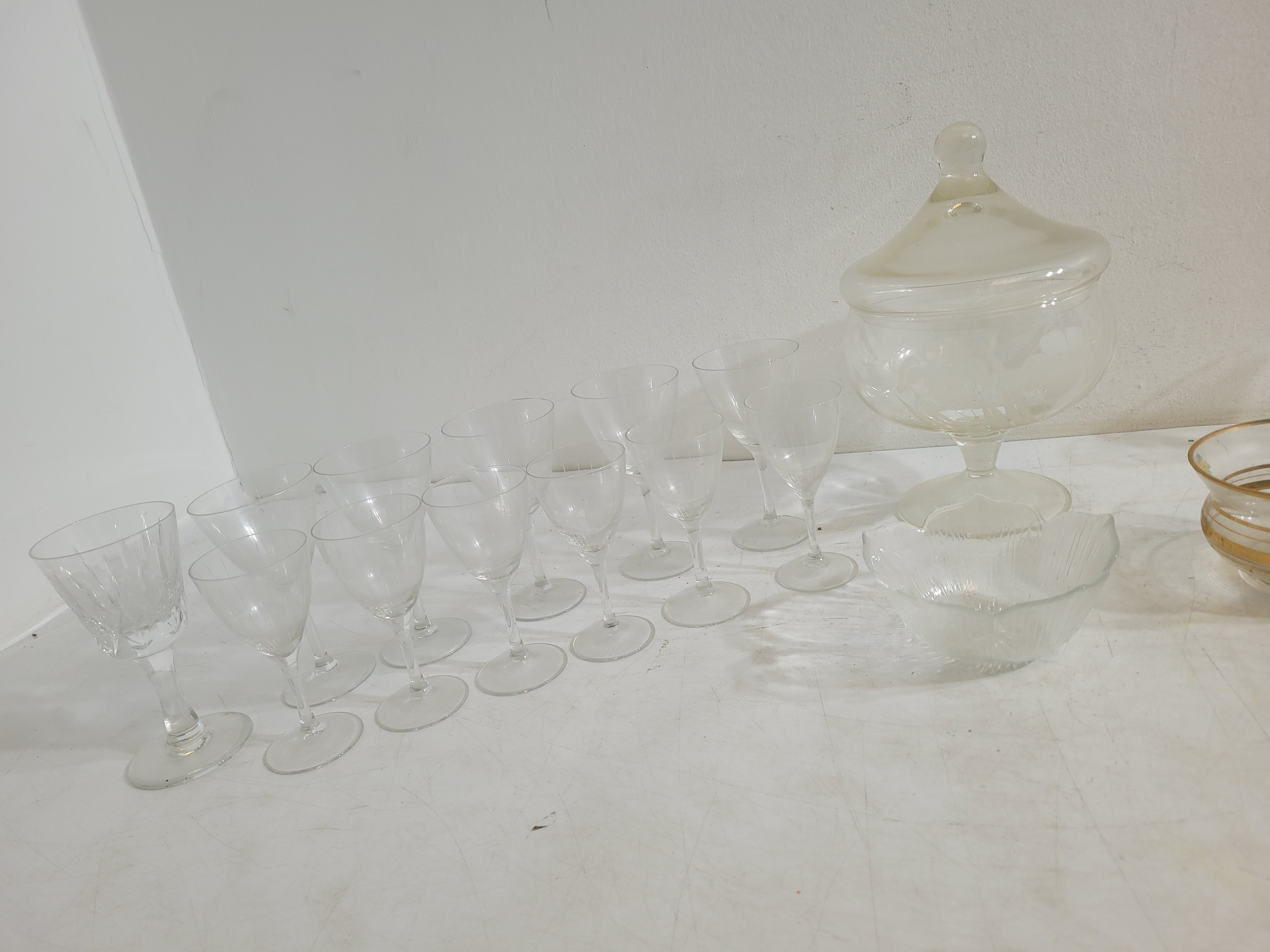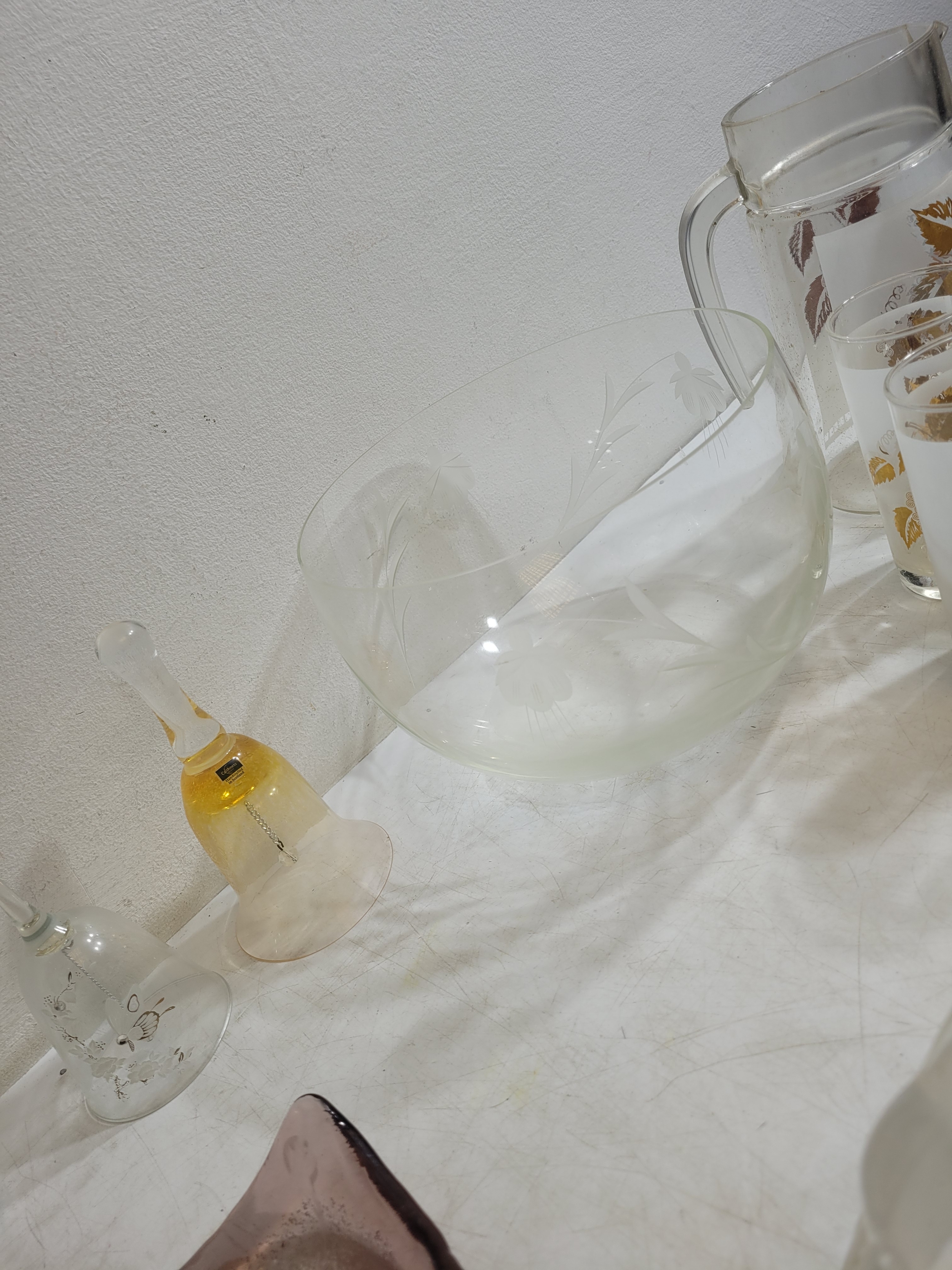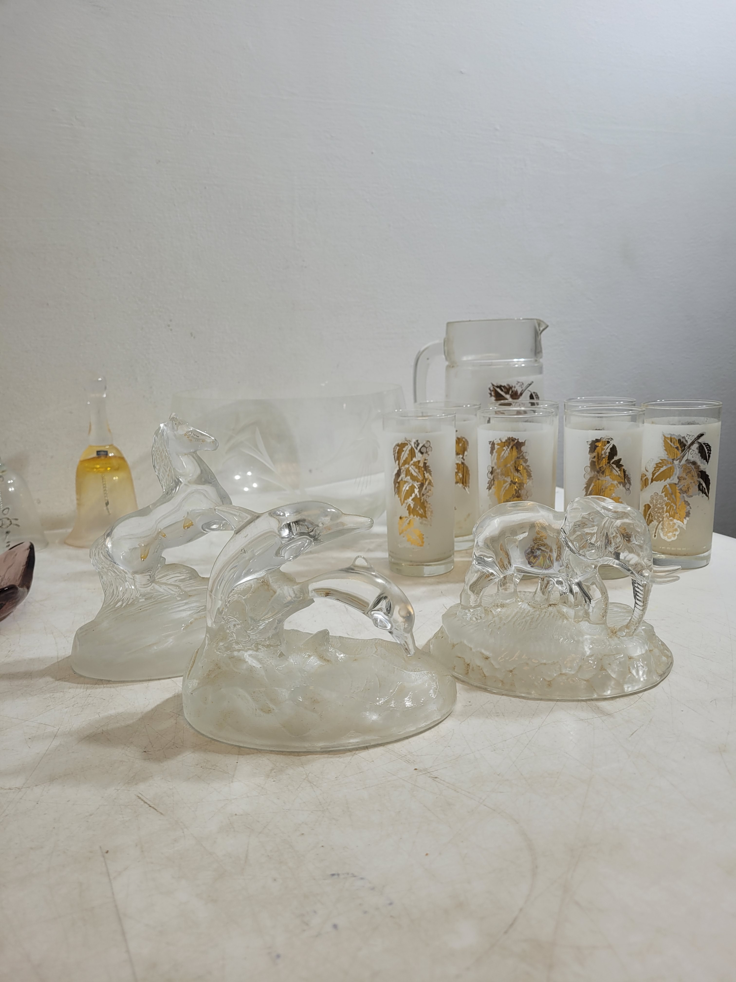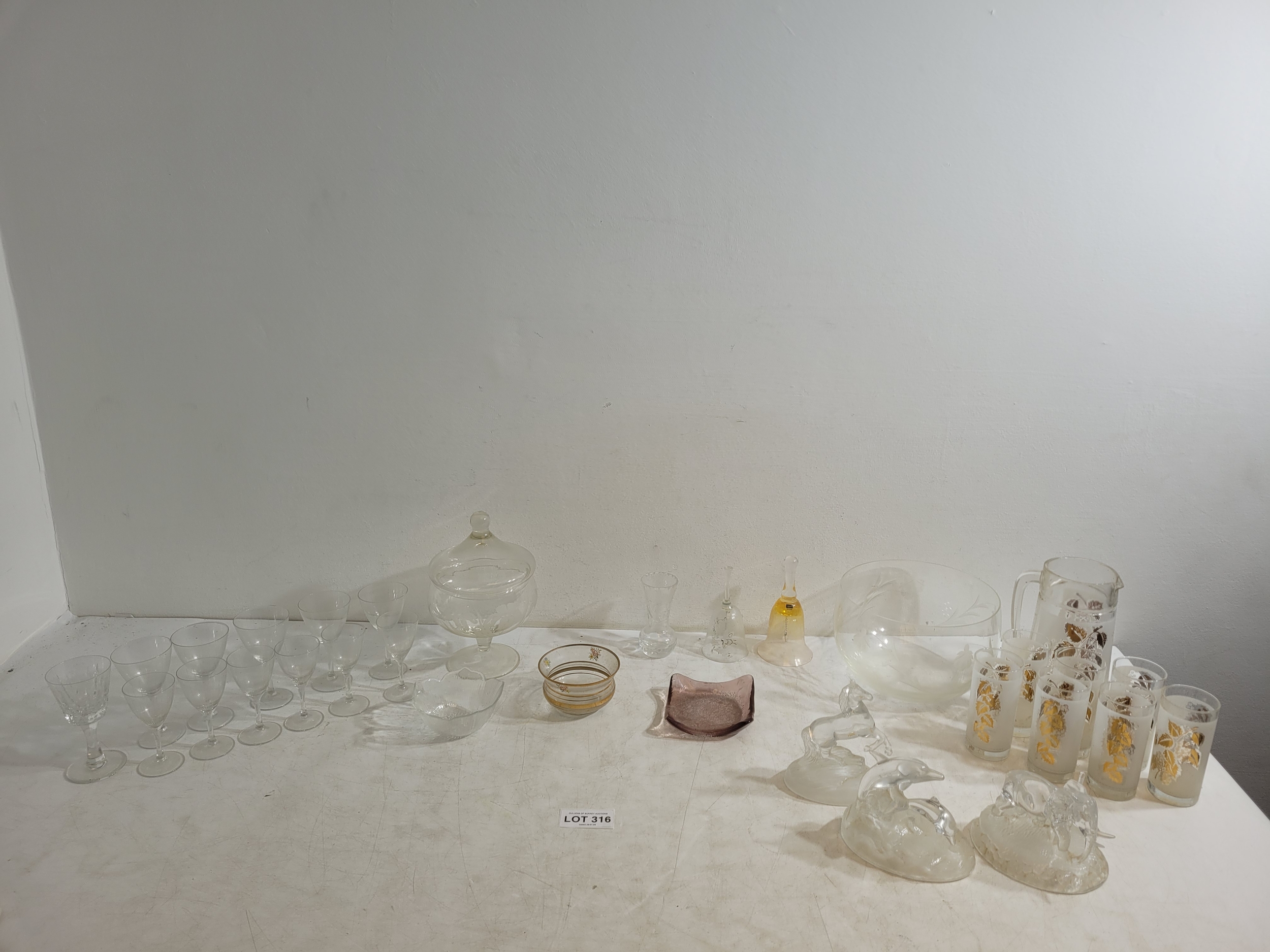 Collection of crystal and glass including ornaments glasses jugs and more