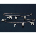 Two 9ct gold curb-link charm bracelets, each suspending thre...