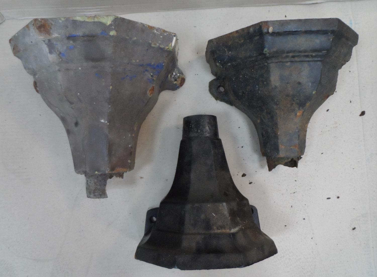 3 old, cast iron downpipe Rainwater Hopper Heads (3)