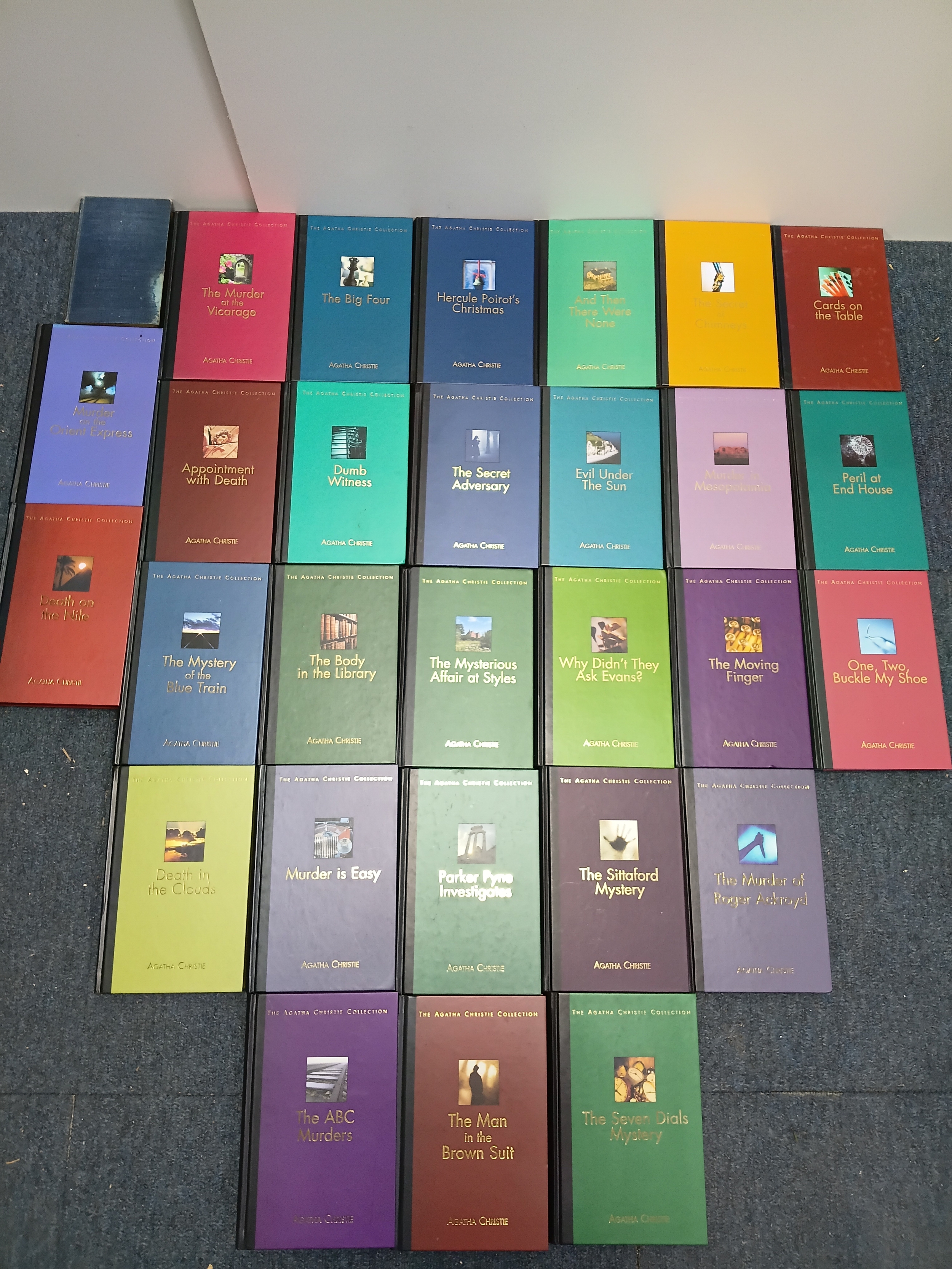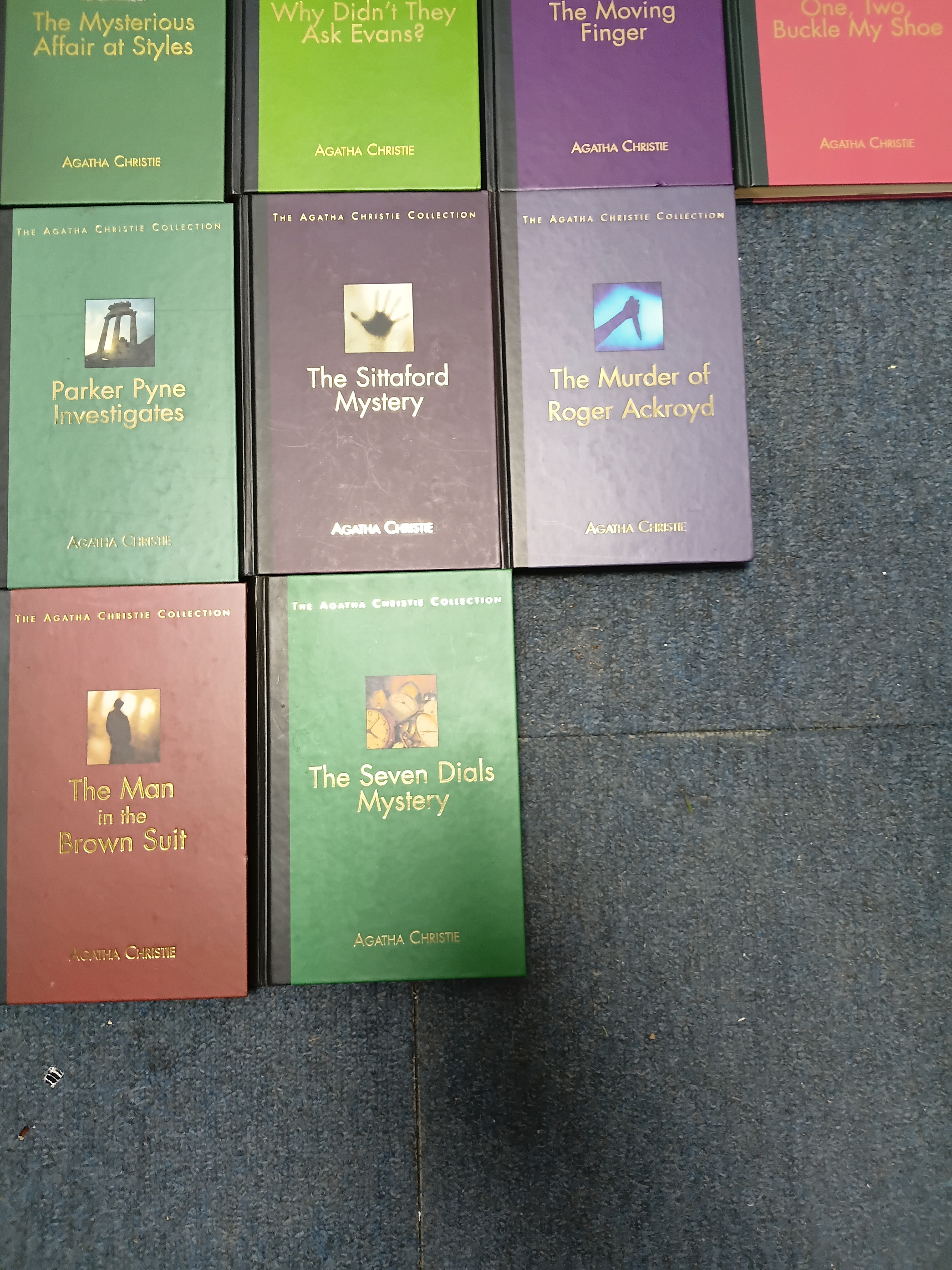 A set of Agatha christie books to include the seven dials mystery. The man in the brown suit, the arc murders, death in the clouds, murder is easy, the moving finger and more