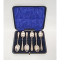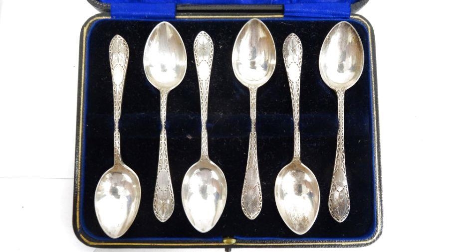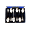 Set of six Edwardian silver coffee spoons with wriggle engraved handles, in case