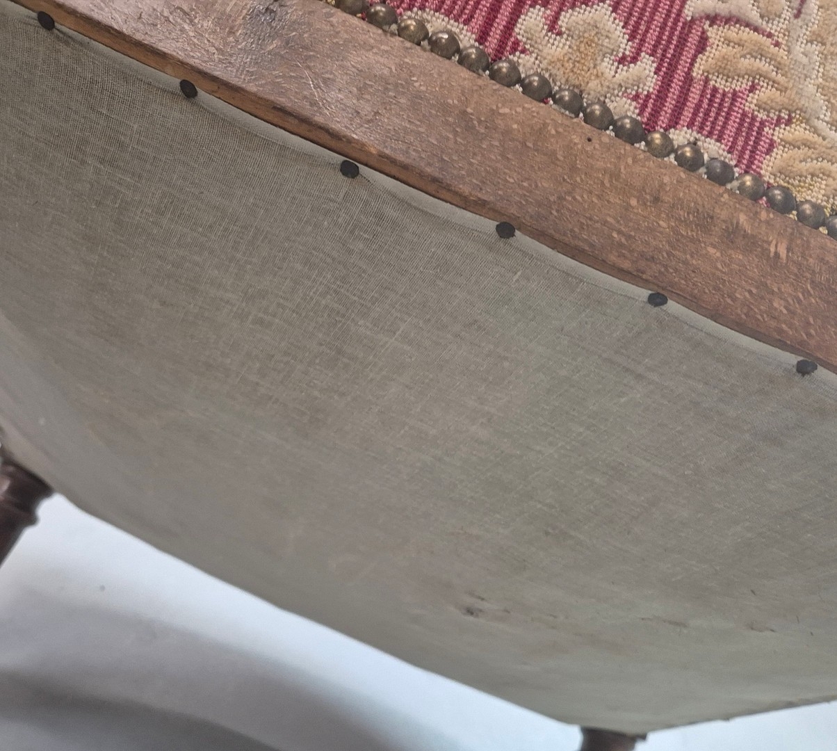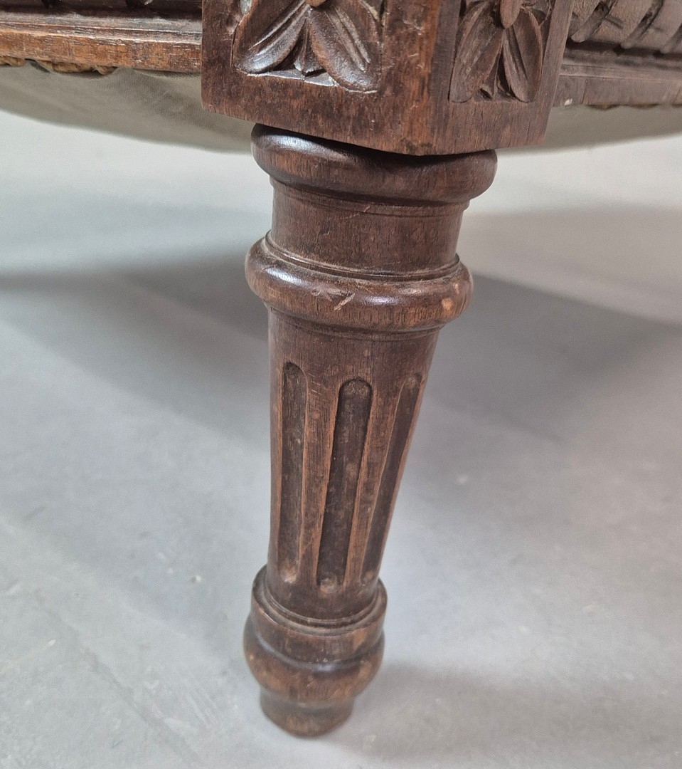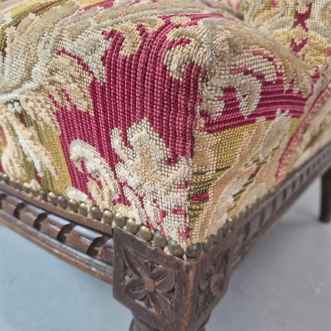 LATE 19TH CENTURY FRENCH WALNUT BERGERE. brocade upholstery, 94cm H x 82cm W x 88cm D.
