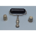 Two silver Thimbles and a silver topped antique blotter