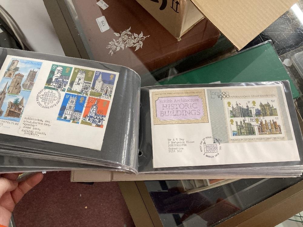 Stamps: Two albums containing sixty nine first day and commemorative covers from 1970-1981.