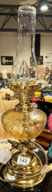 Brass Converted Oil Lamp with Amber Style Well