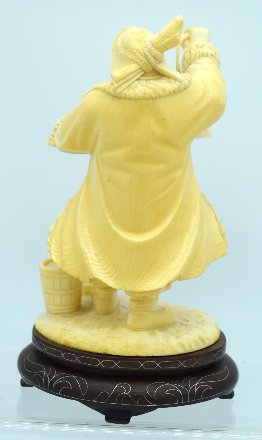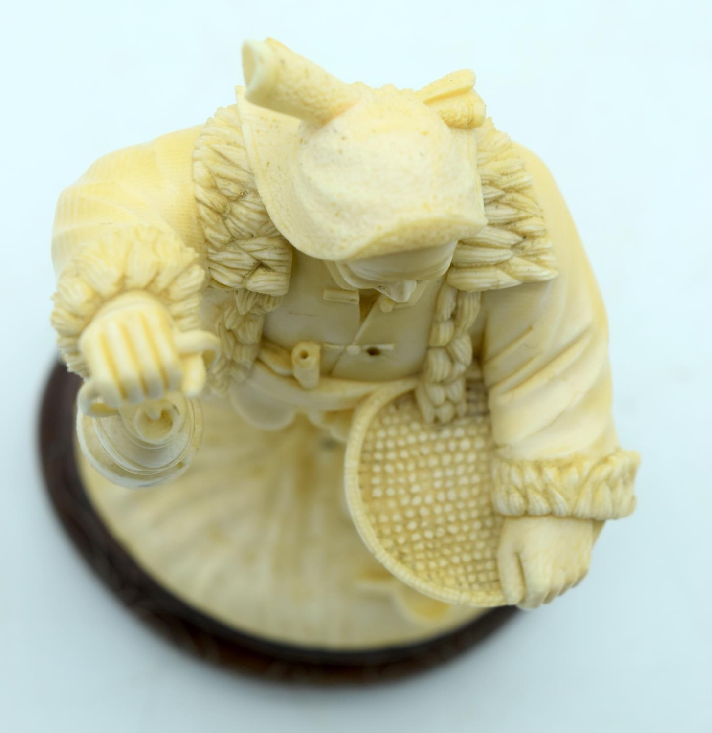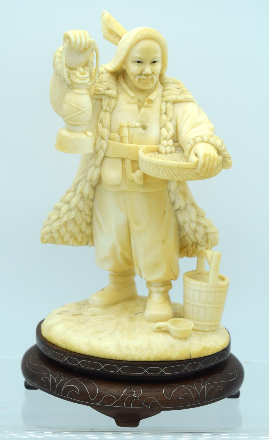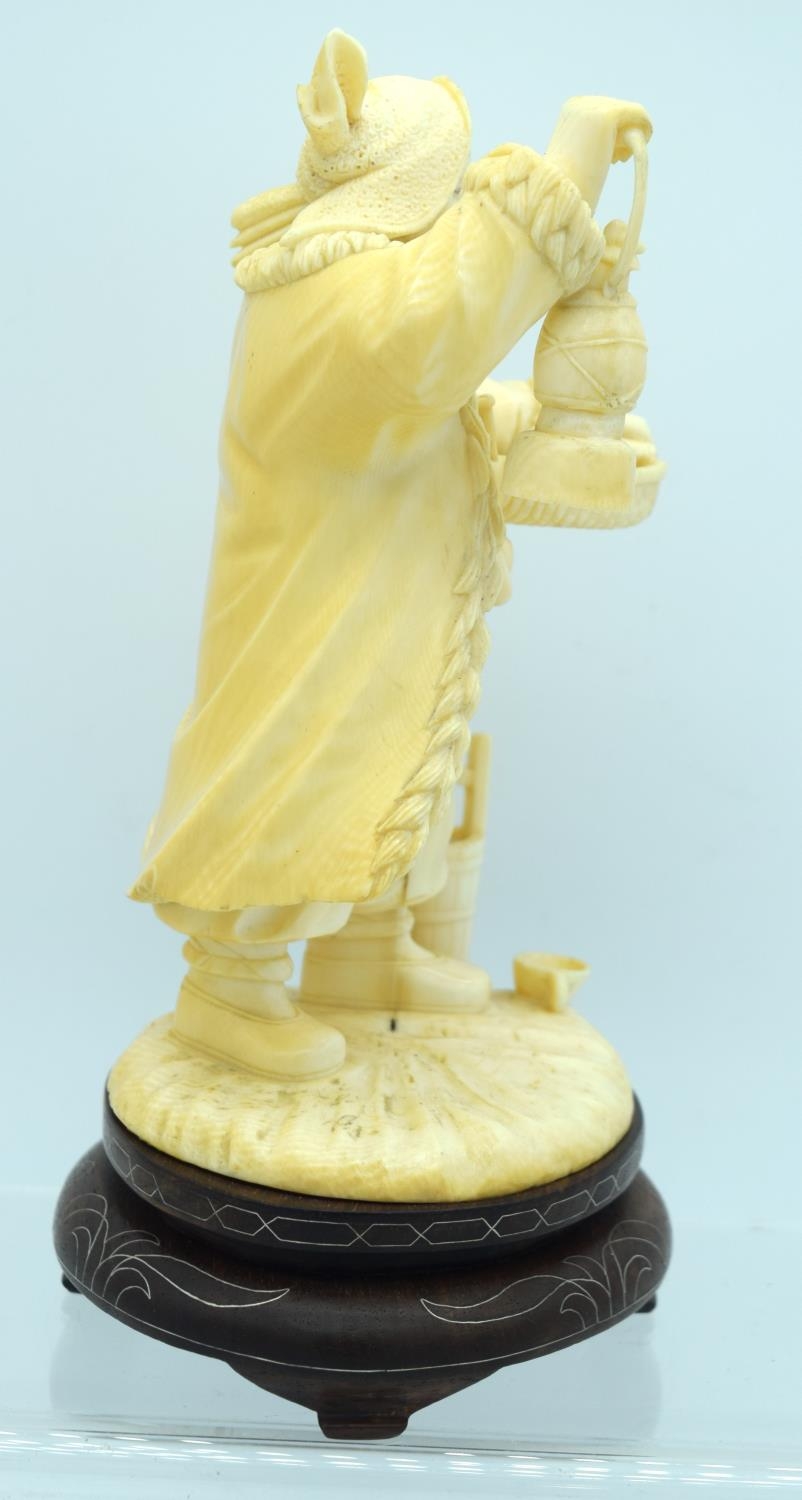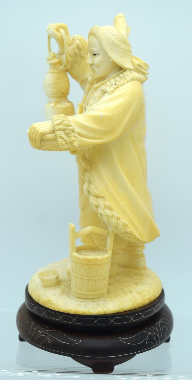 AN EARLY 20TH CENTURY CHINESE CARVED CULTURAL REVOLUTION IVORY modelled roaming holding grain holding a lantern. Ivory 18 cm x 8 cm.