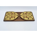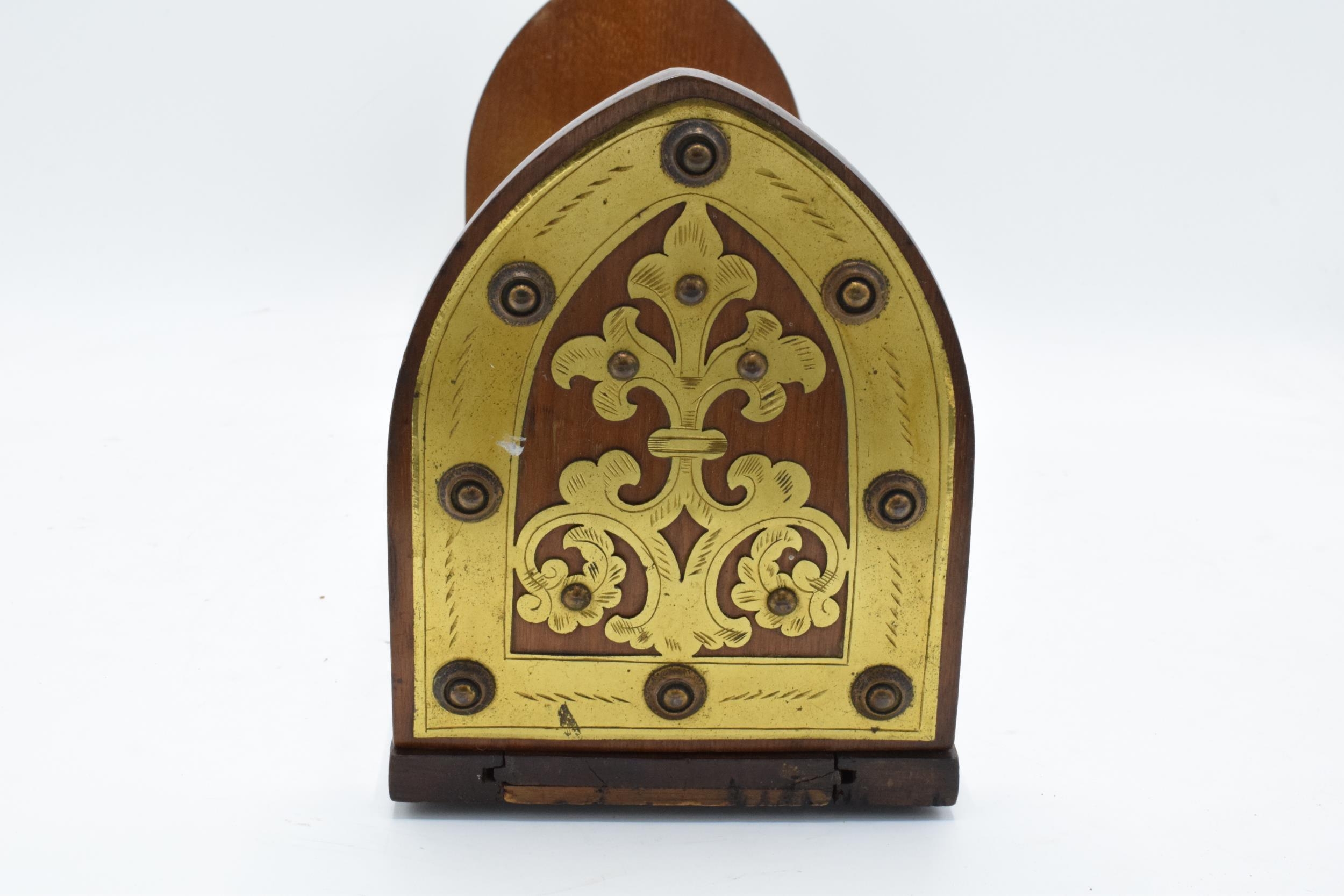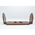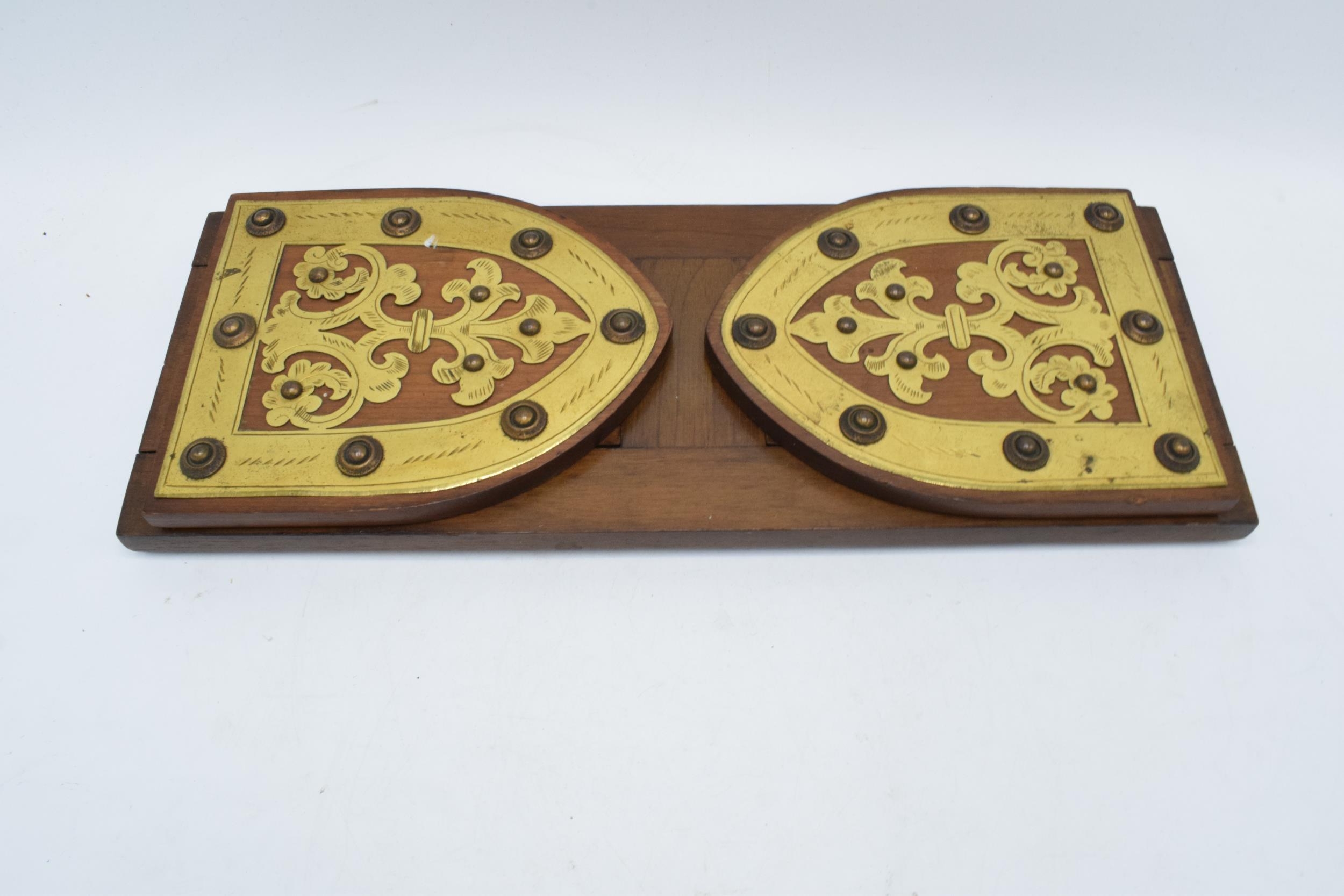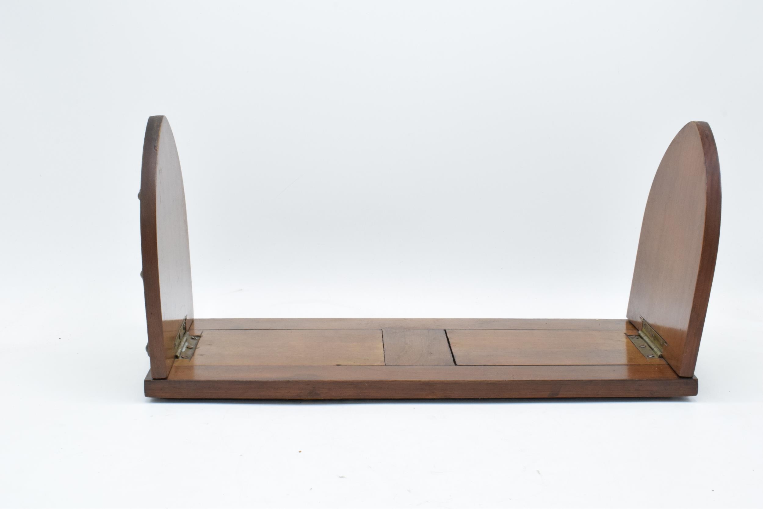 An early 20th century wooden and brass adjustable bookshelf. 54cm at longest. In good condition.