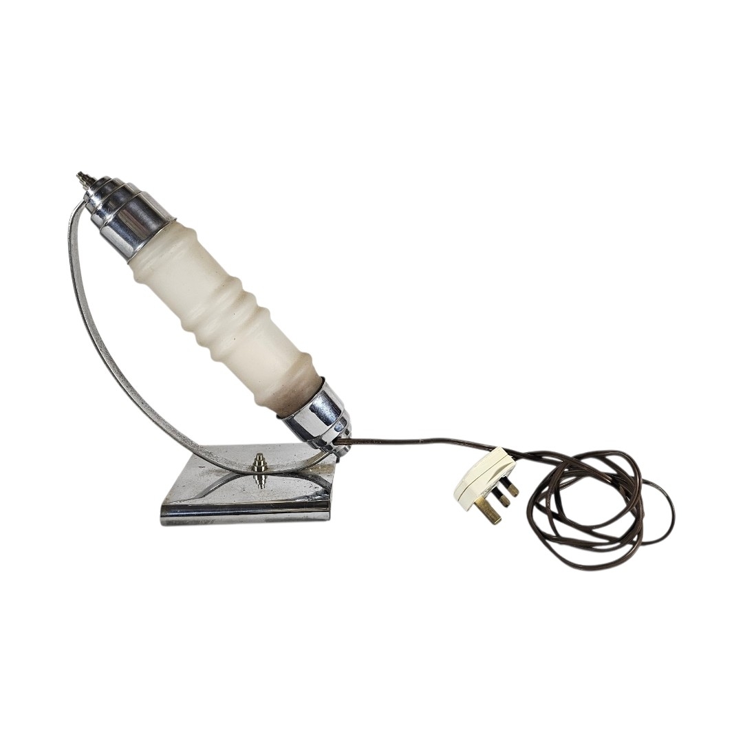 AN ART DECO GLASS AND CHROME ‘MACHINE AGE ROCKET’ DESK LAMP