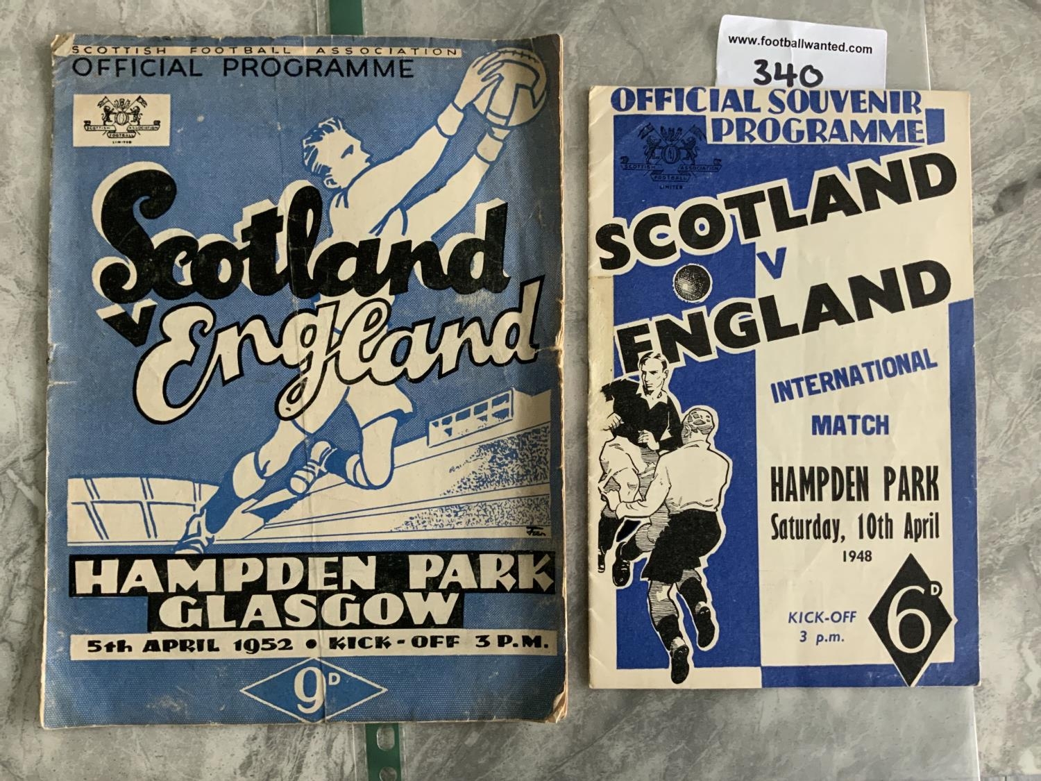 Scotland v England Football Programmes: 1948 good and 1952 with fold and tears. (2)