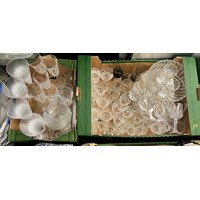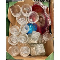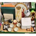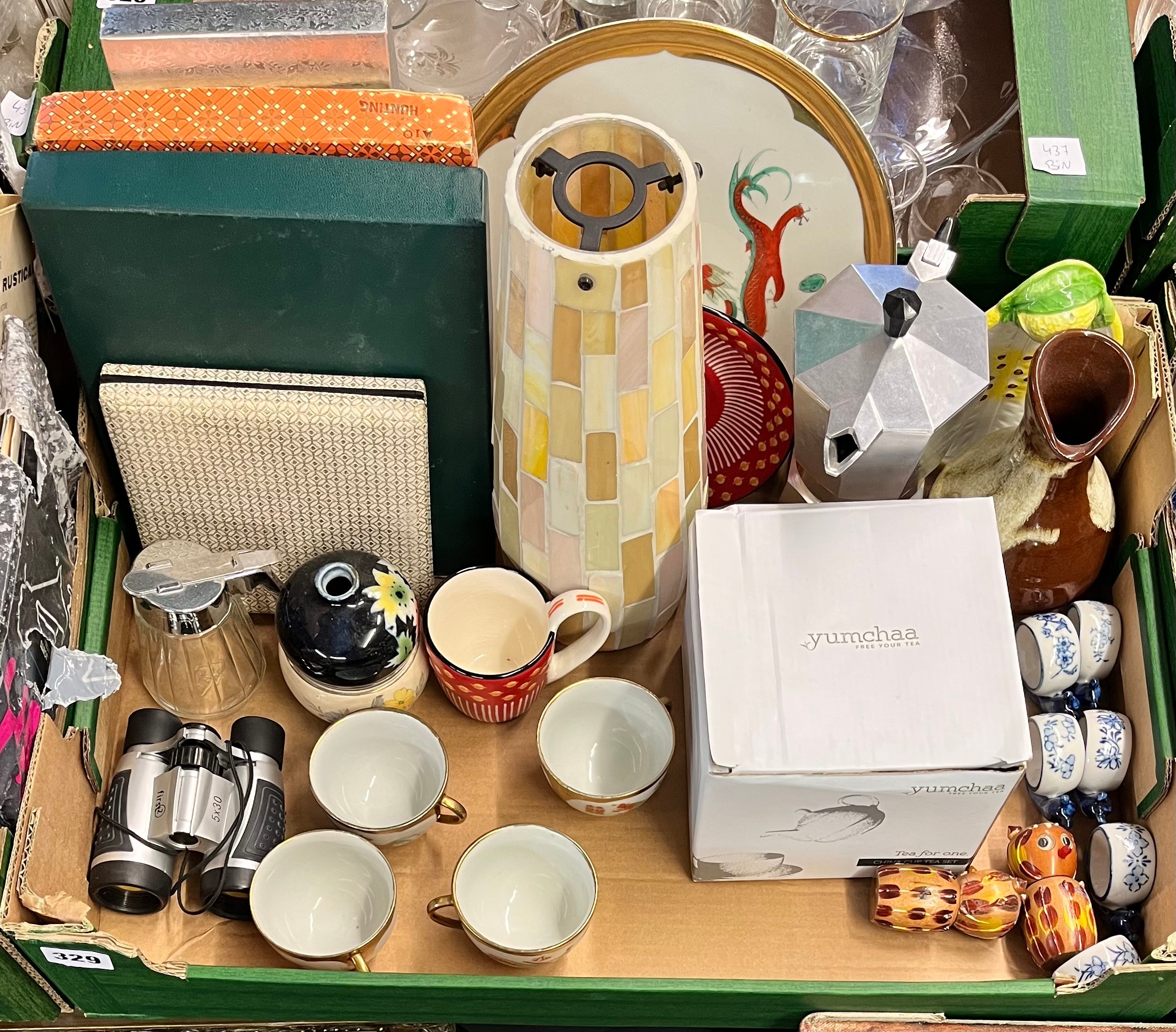 CARTON OF CHINESE PART TEA SET, BOXED TEA POT, BLUE AND WHITE SNAIL NAPKIN RINGS AND BOXED PLACEMATS