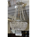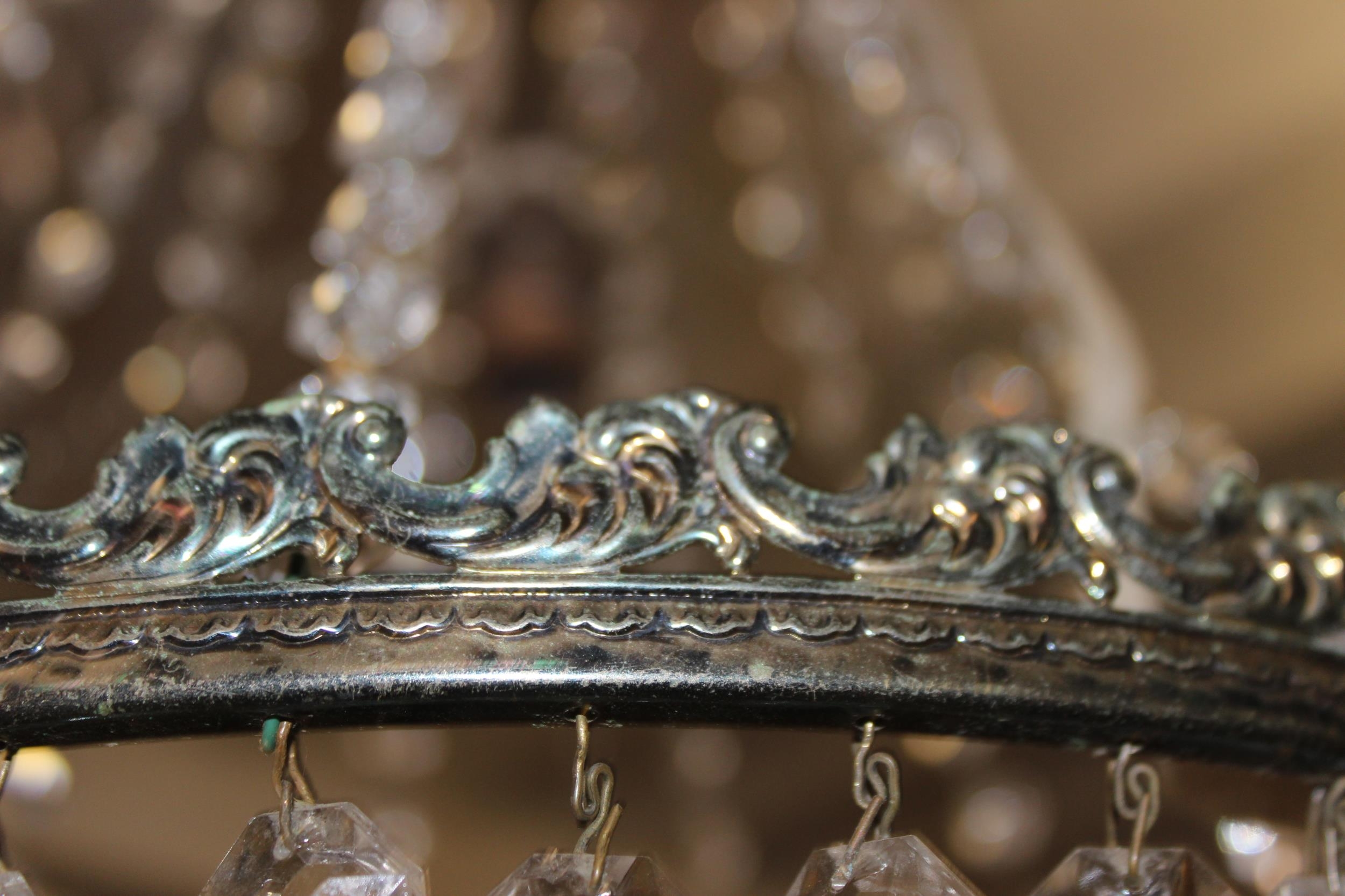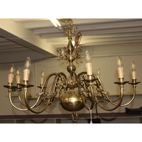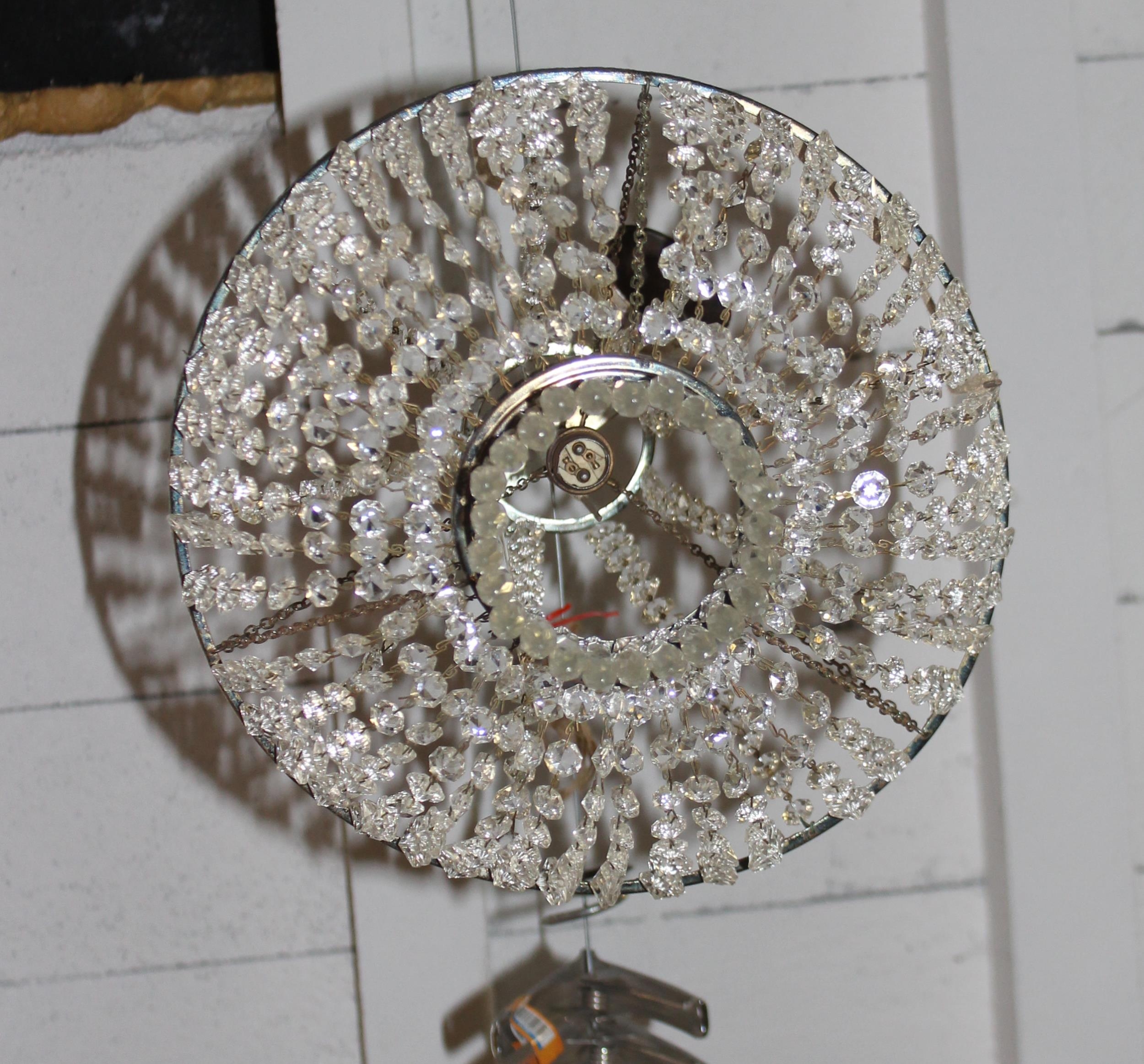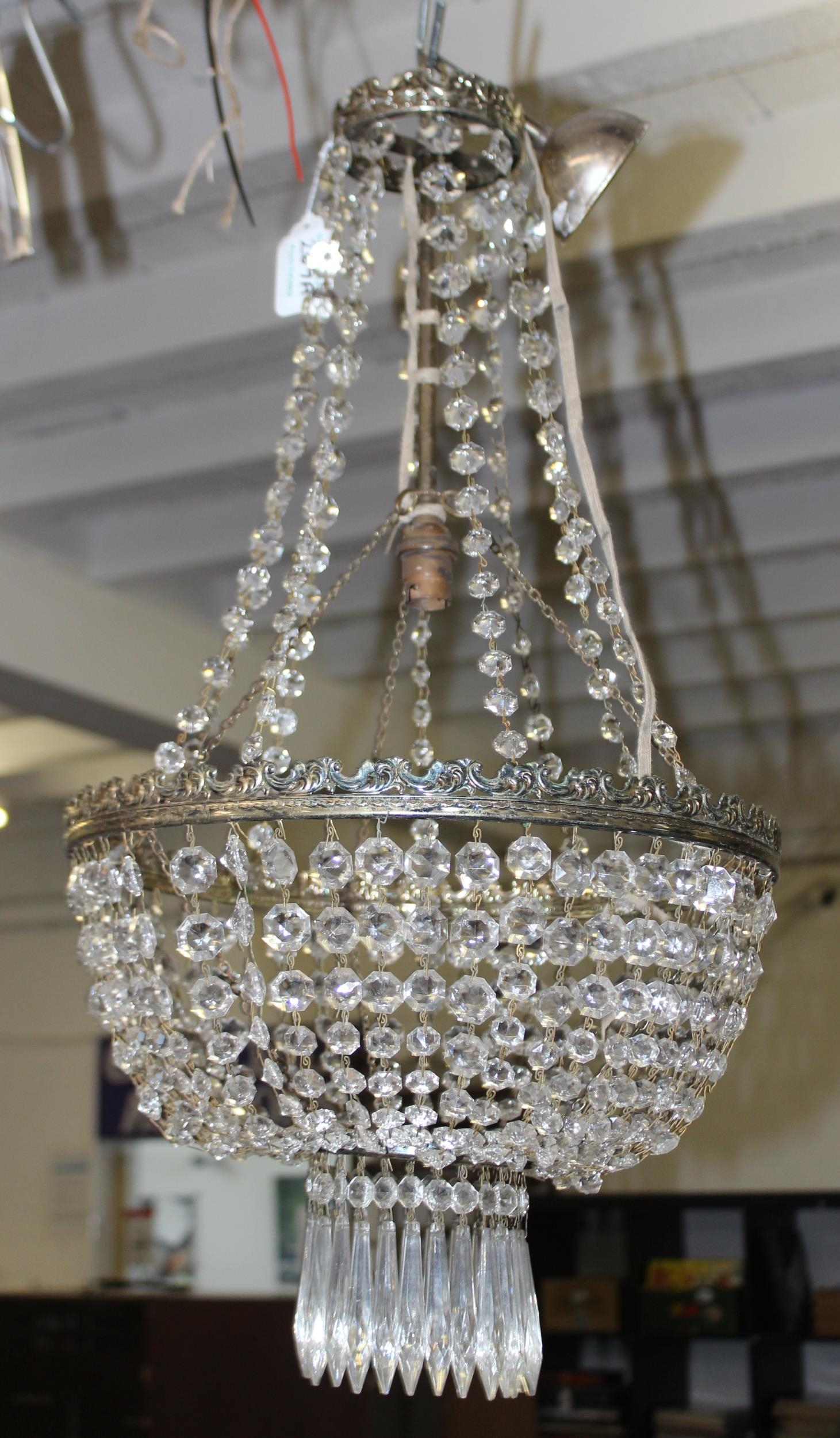 Vintage brass hanging lantern with hammered-meta effect glazed panel approx 30cm H
