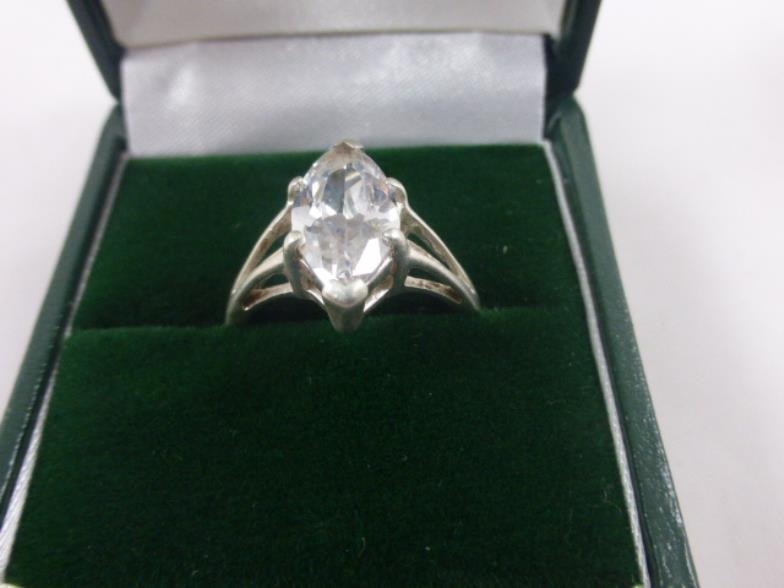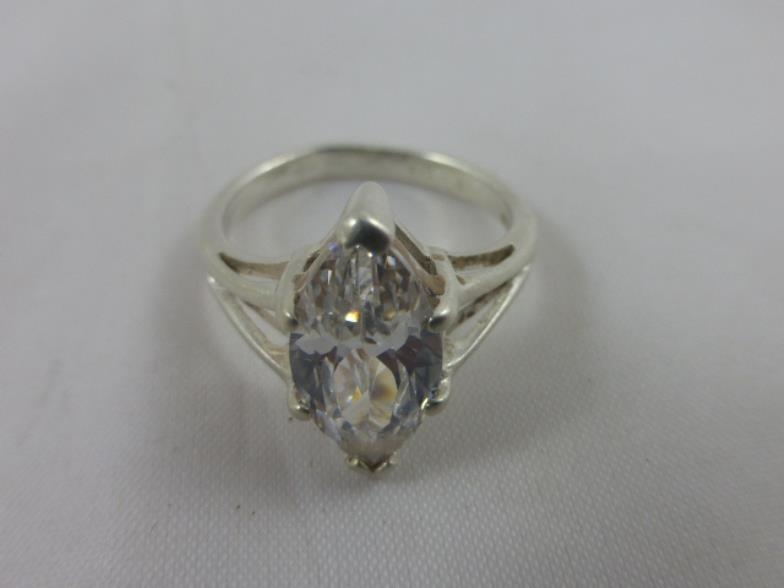 Sterling Silver Boat Shaped Solitaire Ring complete with Presentation Box