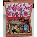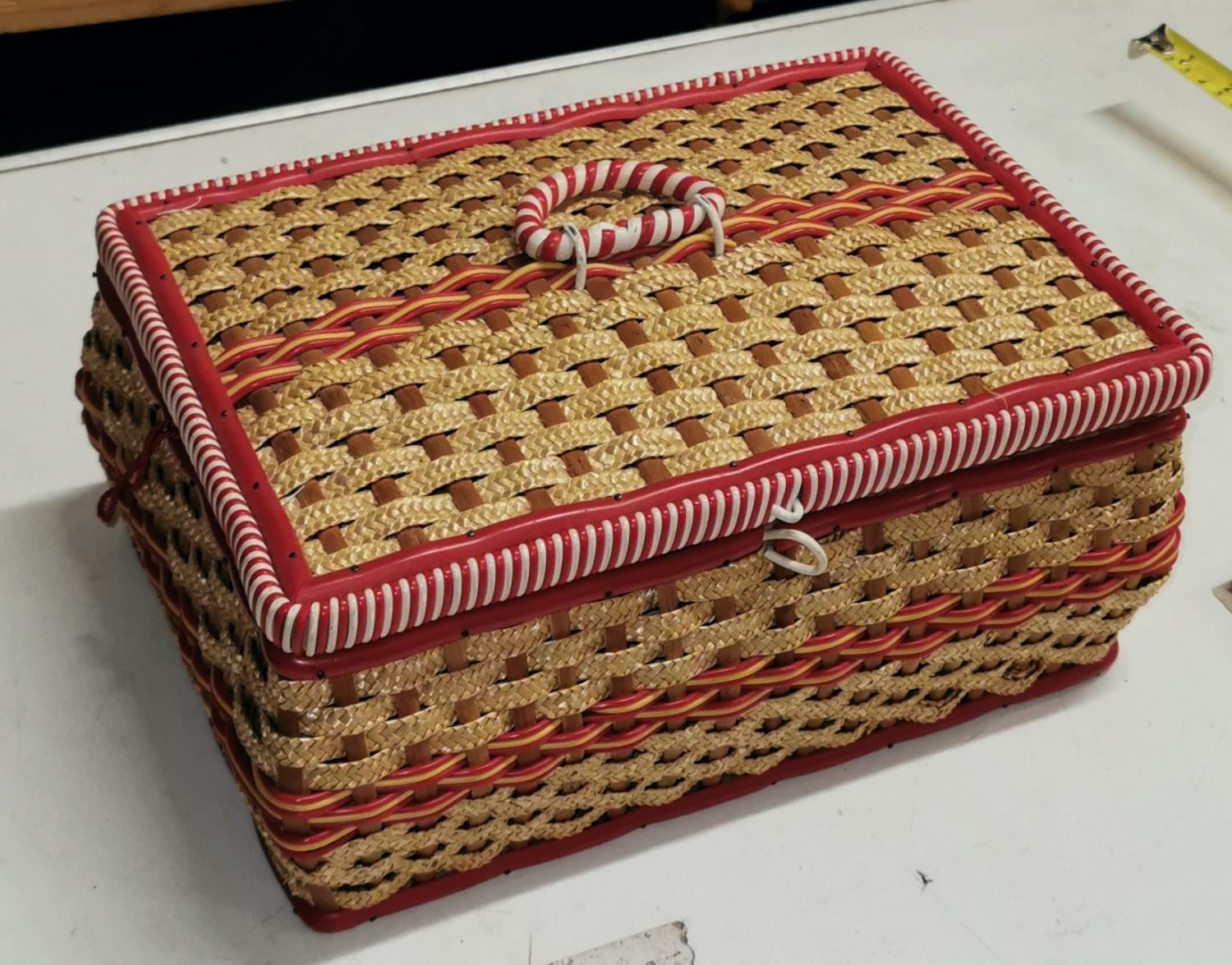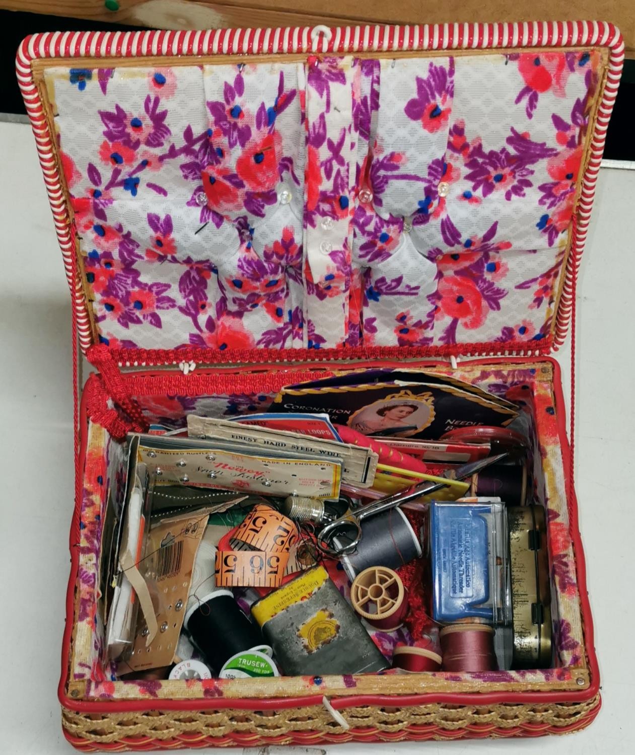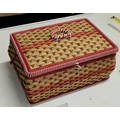 29 x 21 x 14 cm vintage wicker sewing box and contents