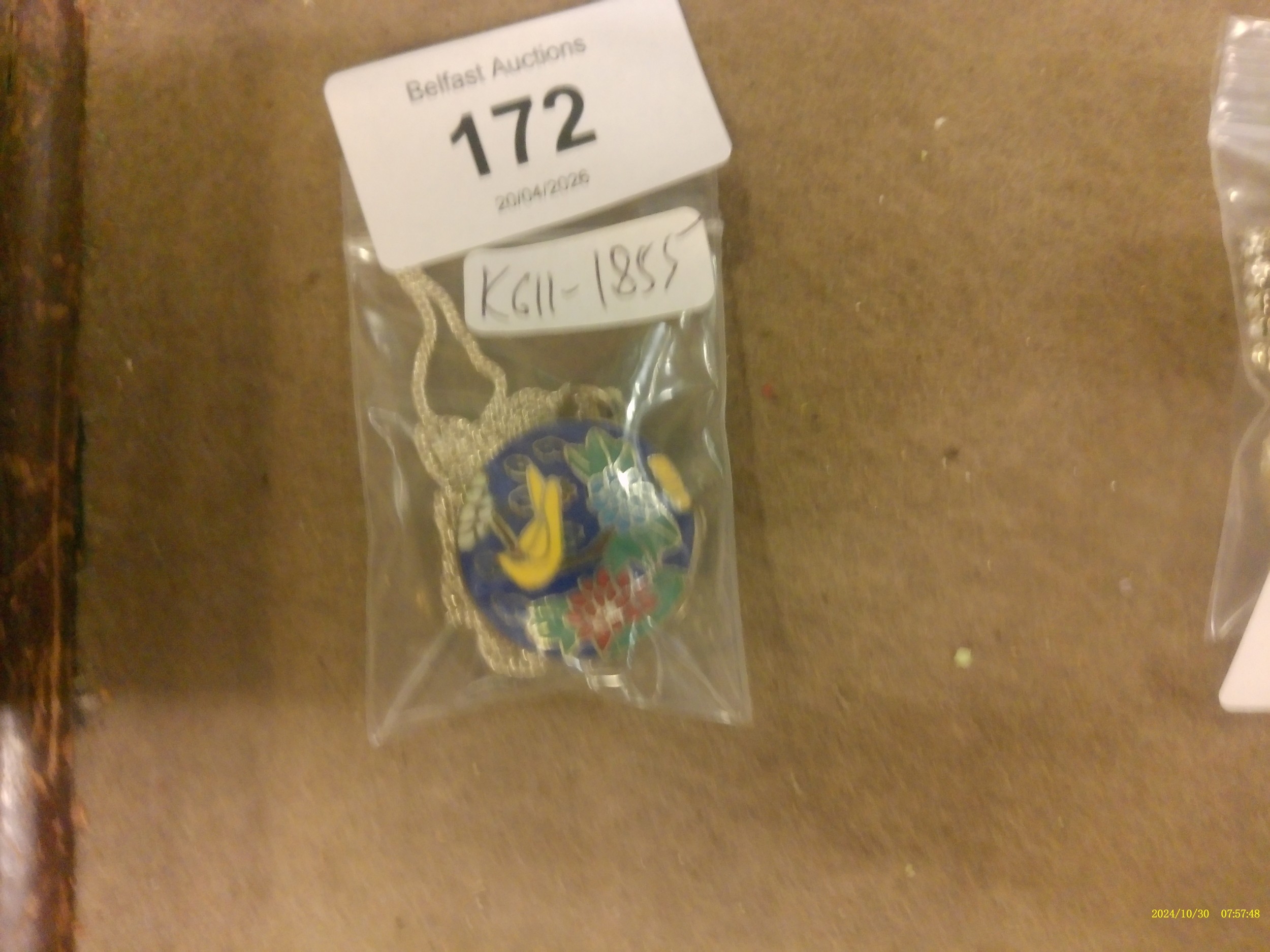 SILVER ENAMEL CIRCULAR LOCKET ON SILVER CHAIN