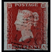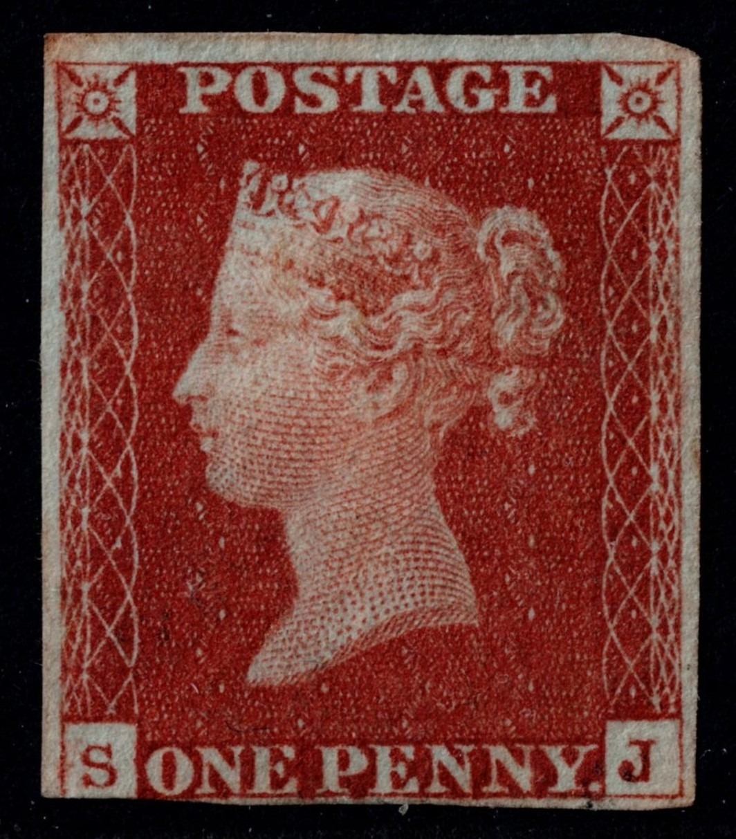GB 1841 1d red plate 65 SJ unused (no gum) virtually 4m shaved SW corner sg8 Cat.£400