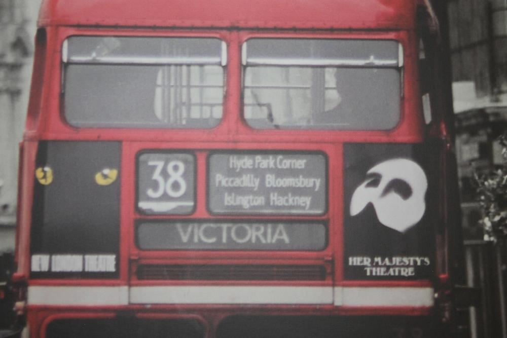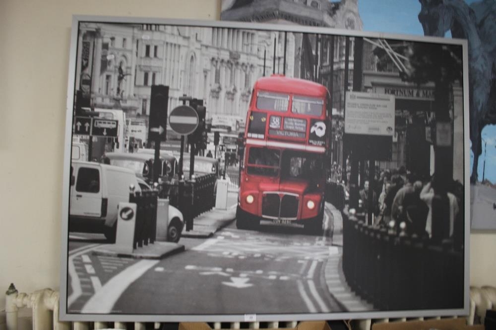 A LARGE MODERN PRINT OF A LONDON BUS NO. 38
