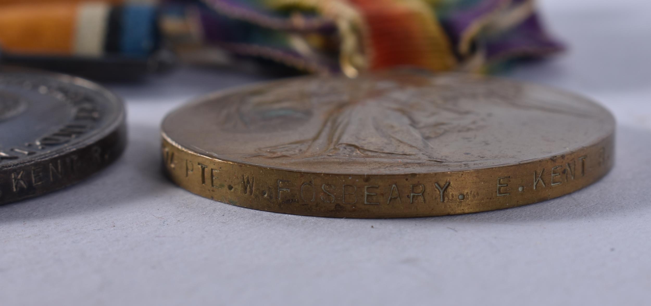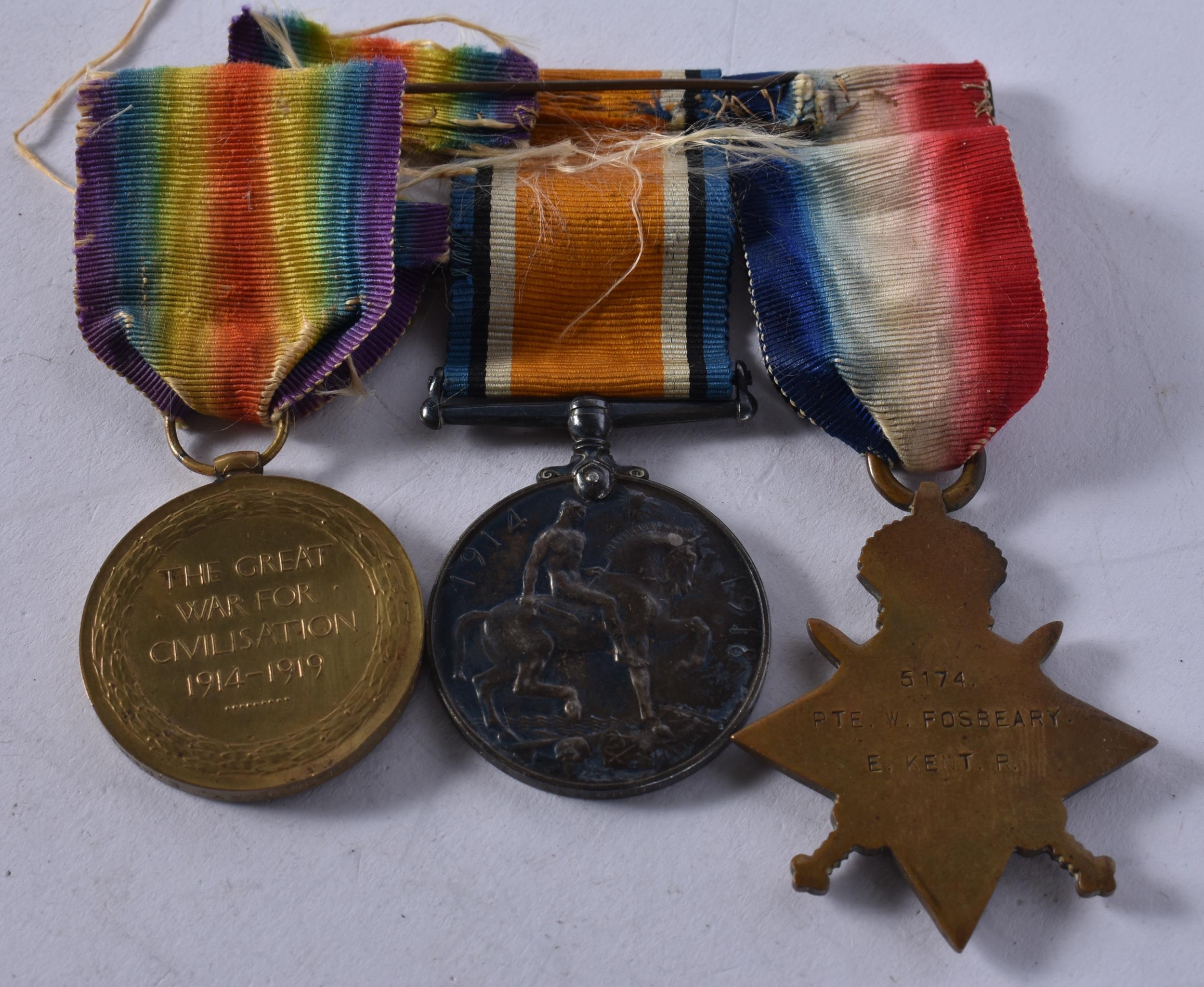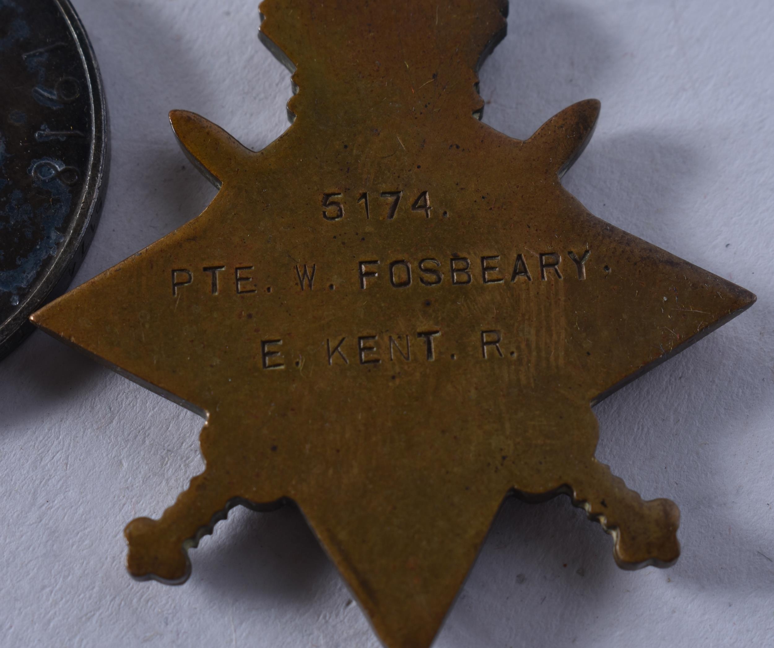 WW1 1914-15 Star Trio Named- 5174 Pte W. Fosbeary E. Kent Regt. (3)