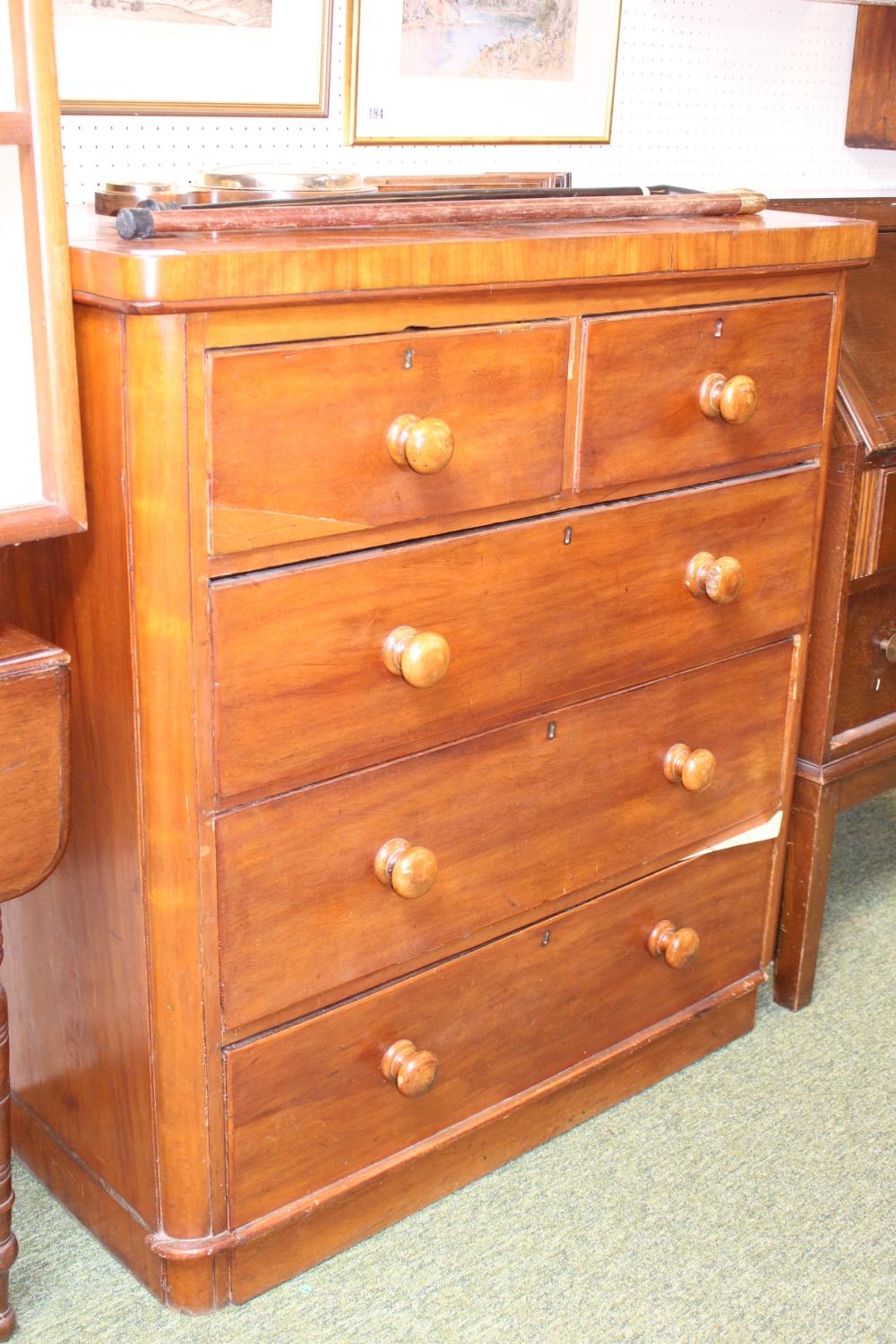 Victorian Walnut Chest of 2 over 3 drawers with turned handles