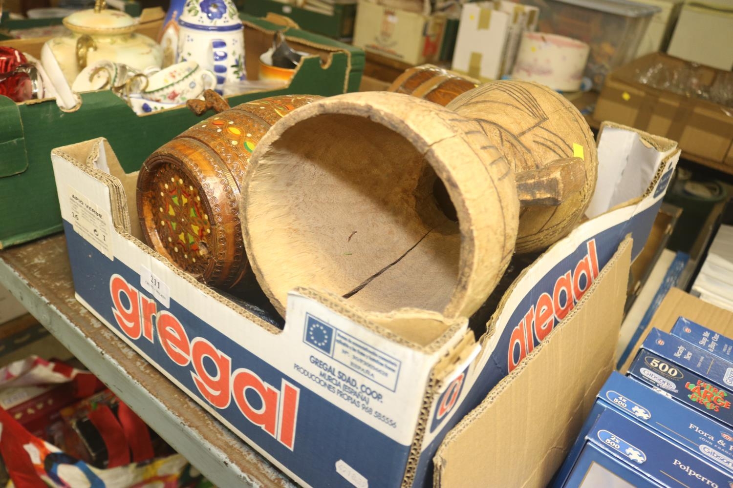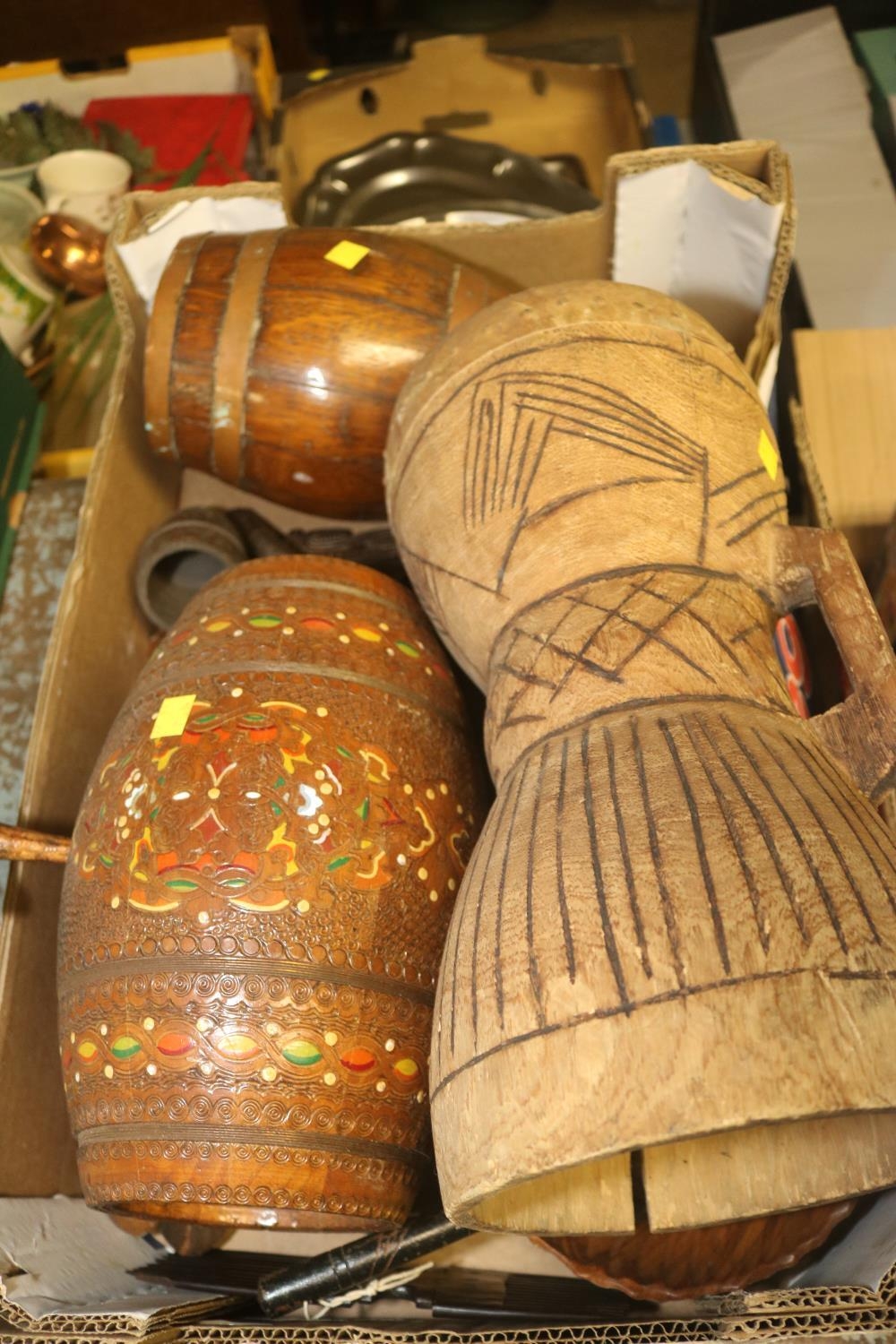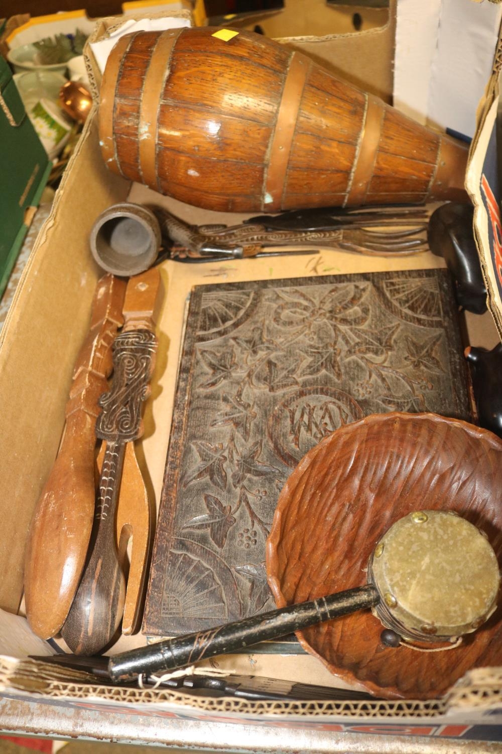 BOX OF WOODEN ITEMS INC. AFRICAN ITEMS