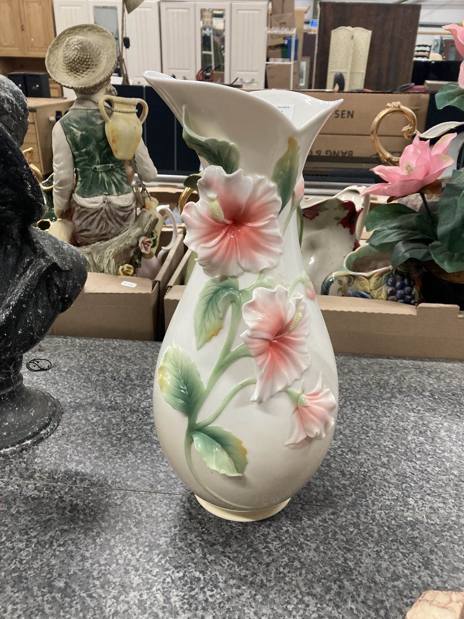 Franz style Graff porcelain vase 43H (as seen, one flower petal damaged)