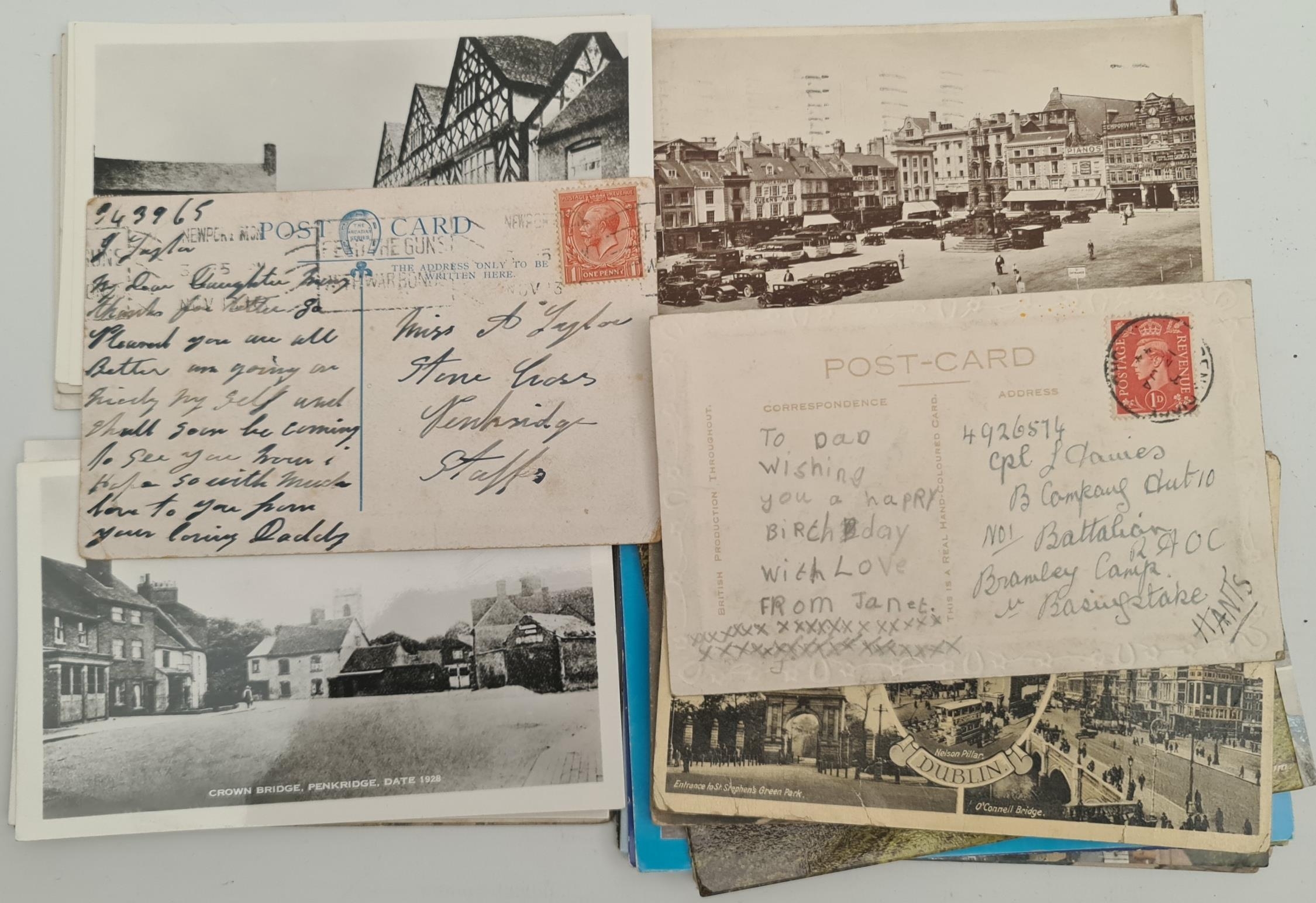 Parcel of 30 Postcards Mixture of British and European. Includes WWI Military With Message From Solder to Daughter and Feed The Guns War Bond Cancellation, WWII Birthday Wishes Daughter to Father, Local Interest Penkridge. Shipping is available. Please ask for a quote before bidding. Where possible we combine shipping costs. Remember, if you are the highest bidder above reserve on this Lot you have bought the item and are legally responsible for the item. Viewing is recommended in either person or via video link. Contact us to arrange.