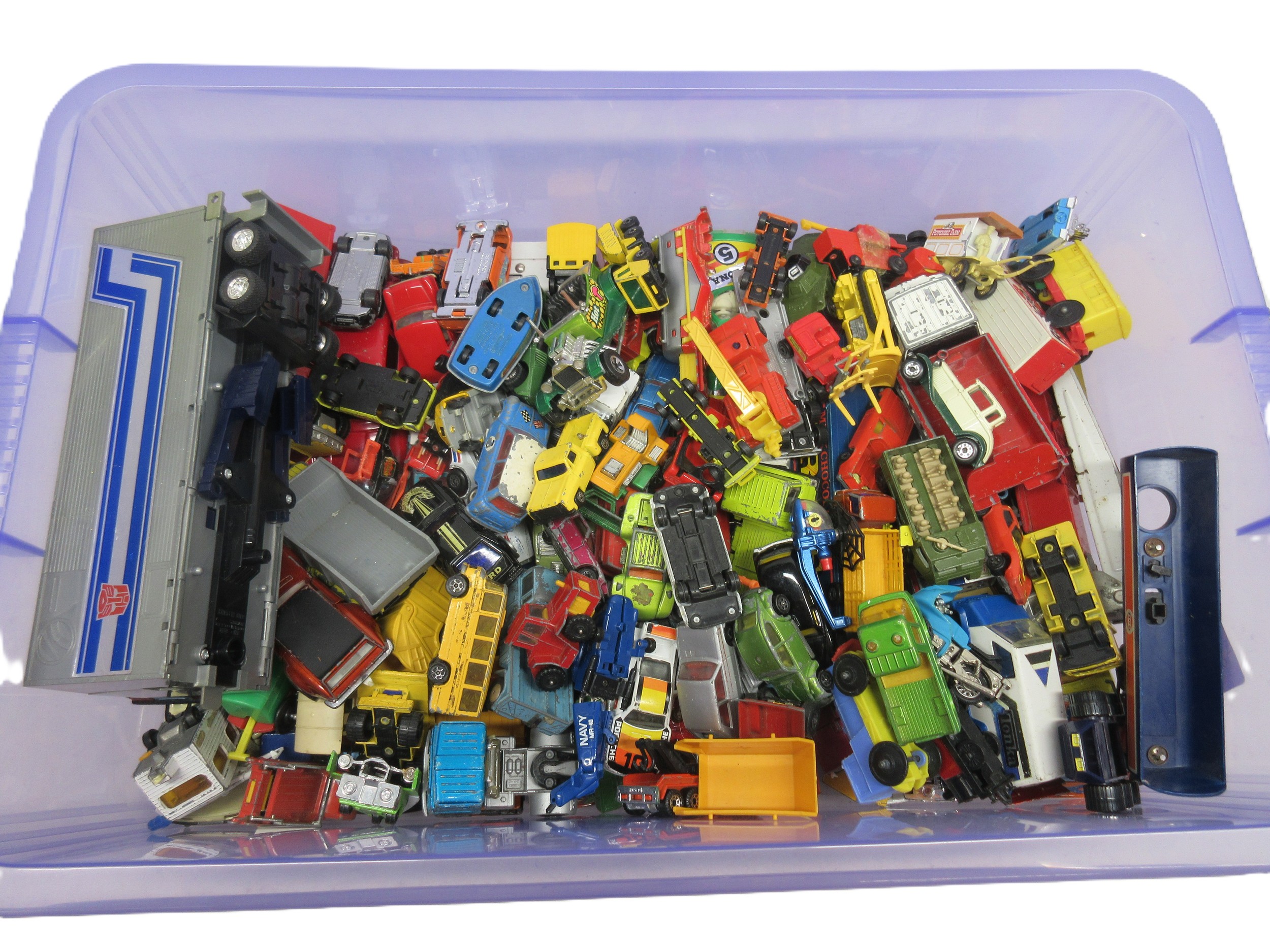 Large collection of vintage dicast toy cars and trucks, including Matchbox, Corgi, Wizz Wheels etc.