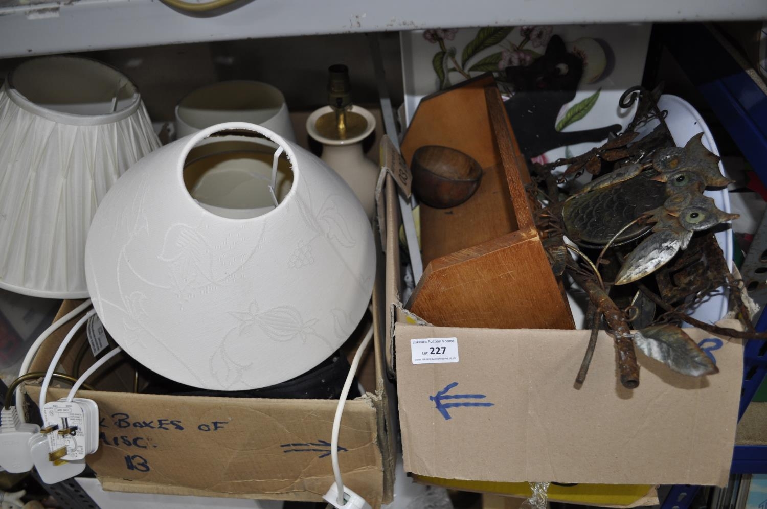 2 X BOXES OF CHINAWARE AND WALL HANGINGS AND TABLE LAMPS