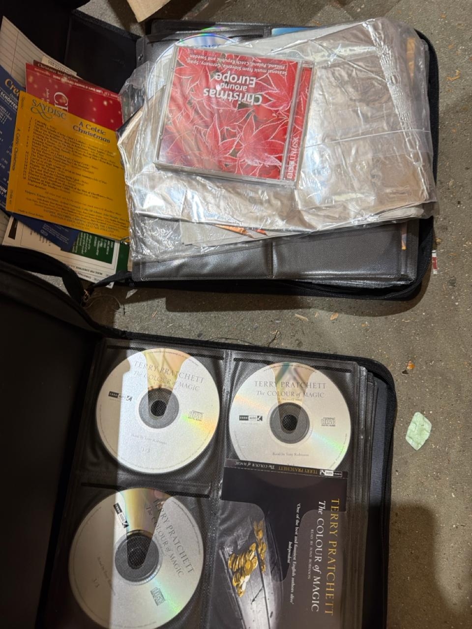 X2 CD folders, one full of Terry Pratchet audio books, the other full of music CDs / BM000024