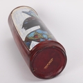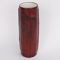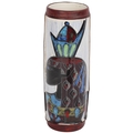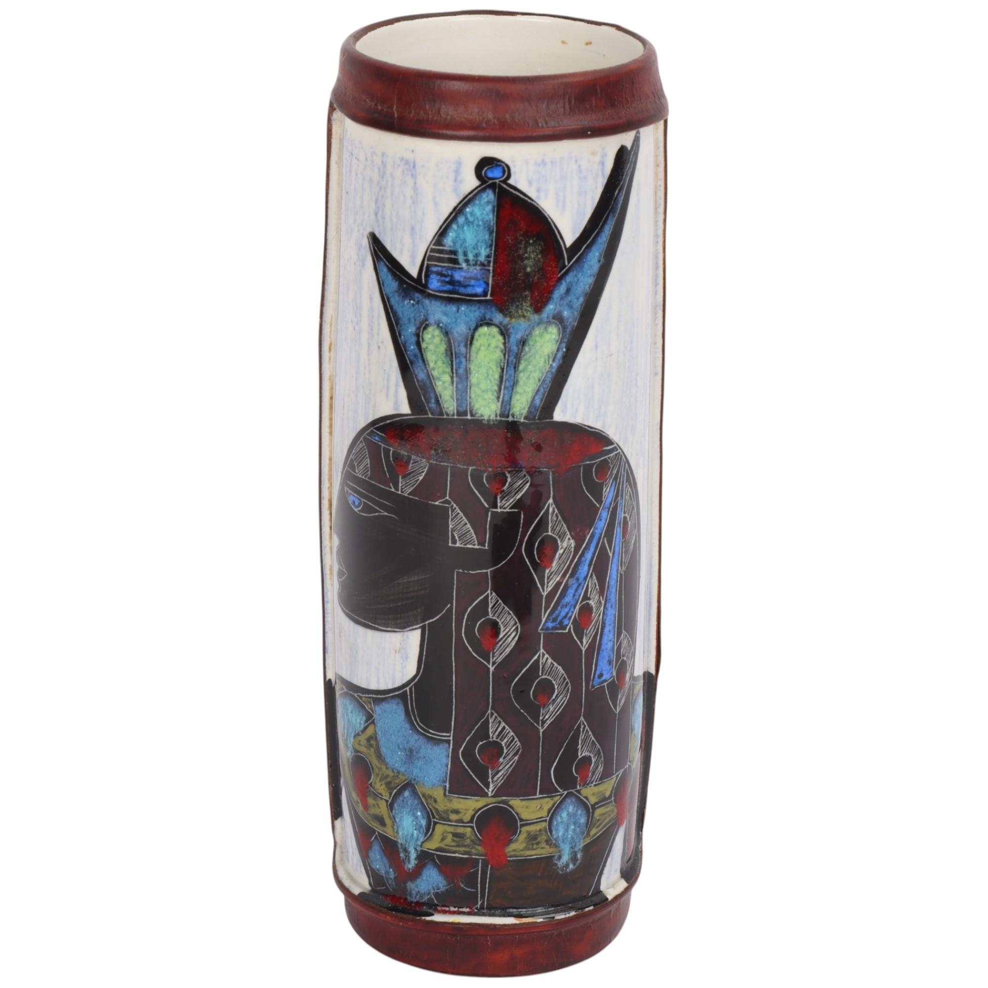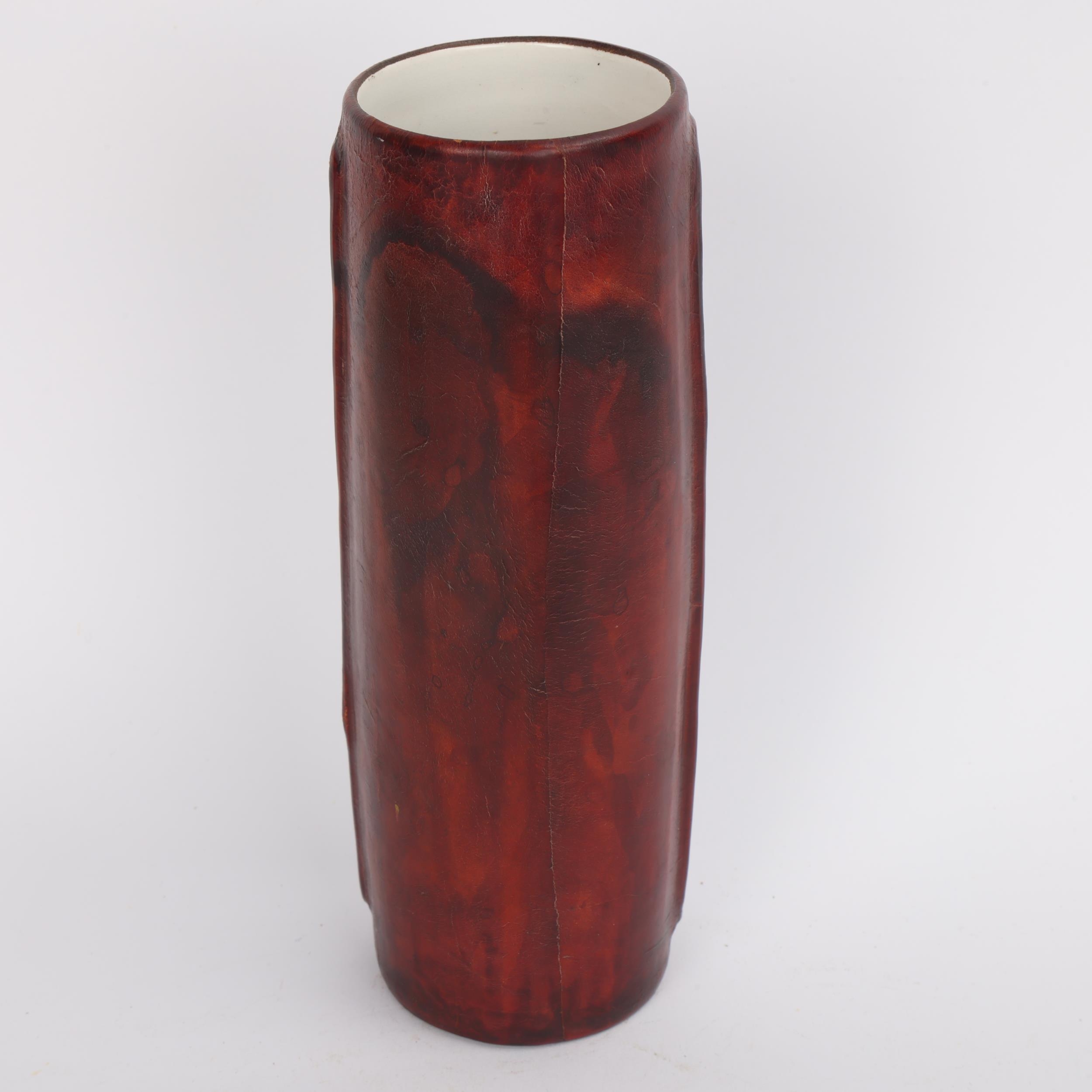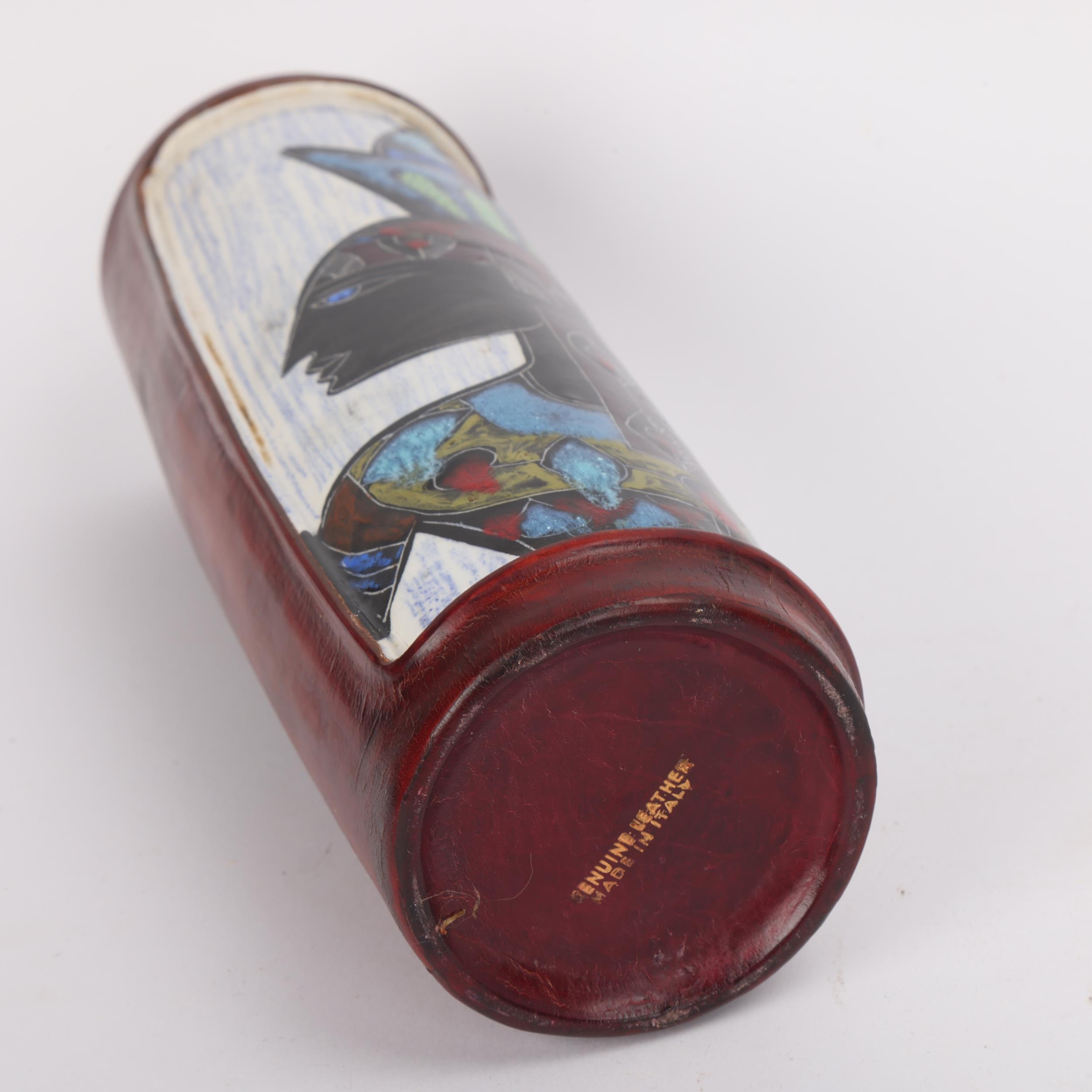 A mid-century Fantoni style ceramic vase, with painted glaze figure and leather sheath, height 20cm