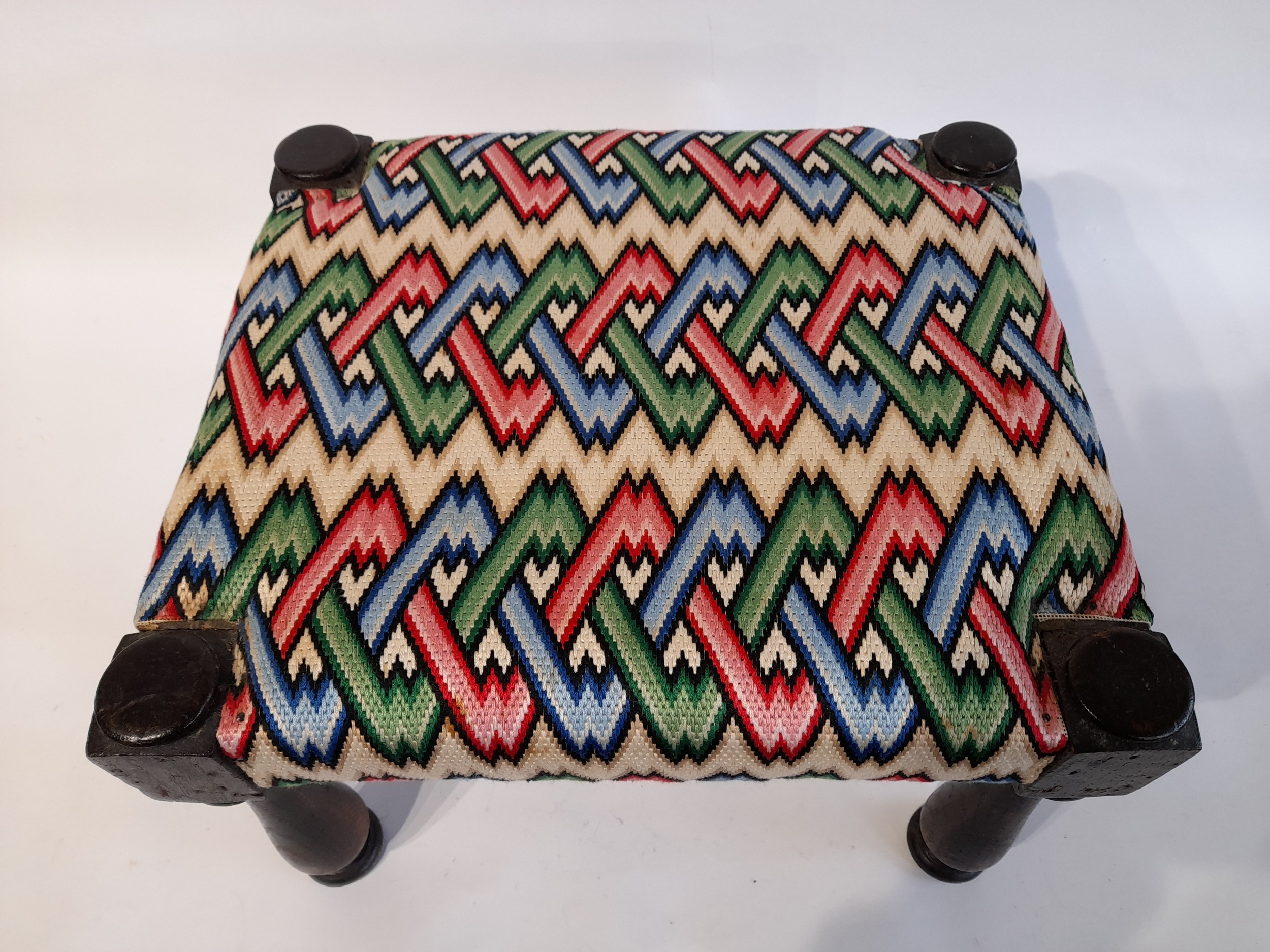 Footstool with striped tapestry finish 40cm x 35cm x 25cm