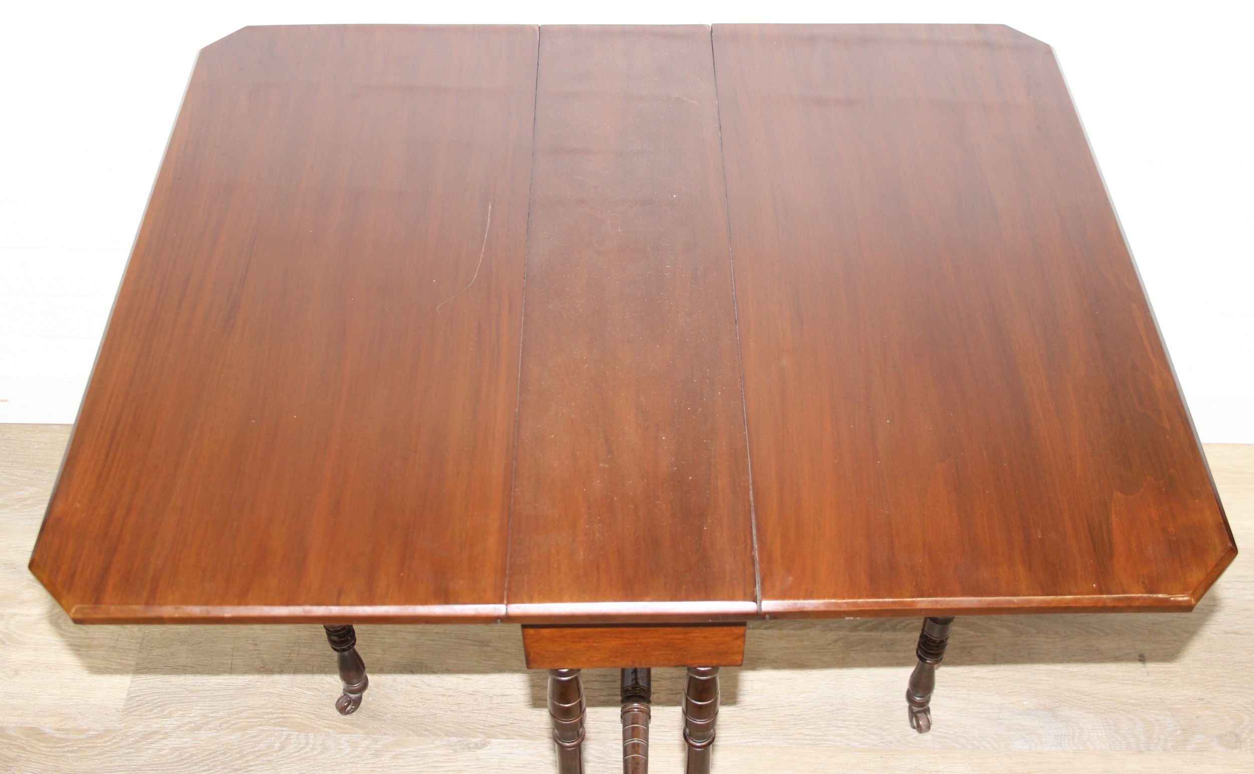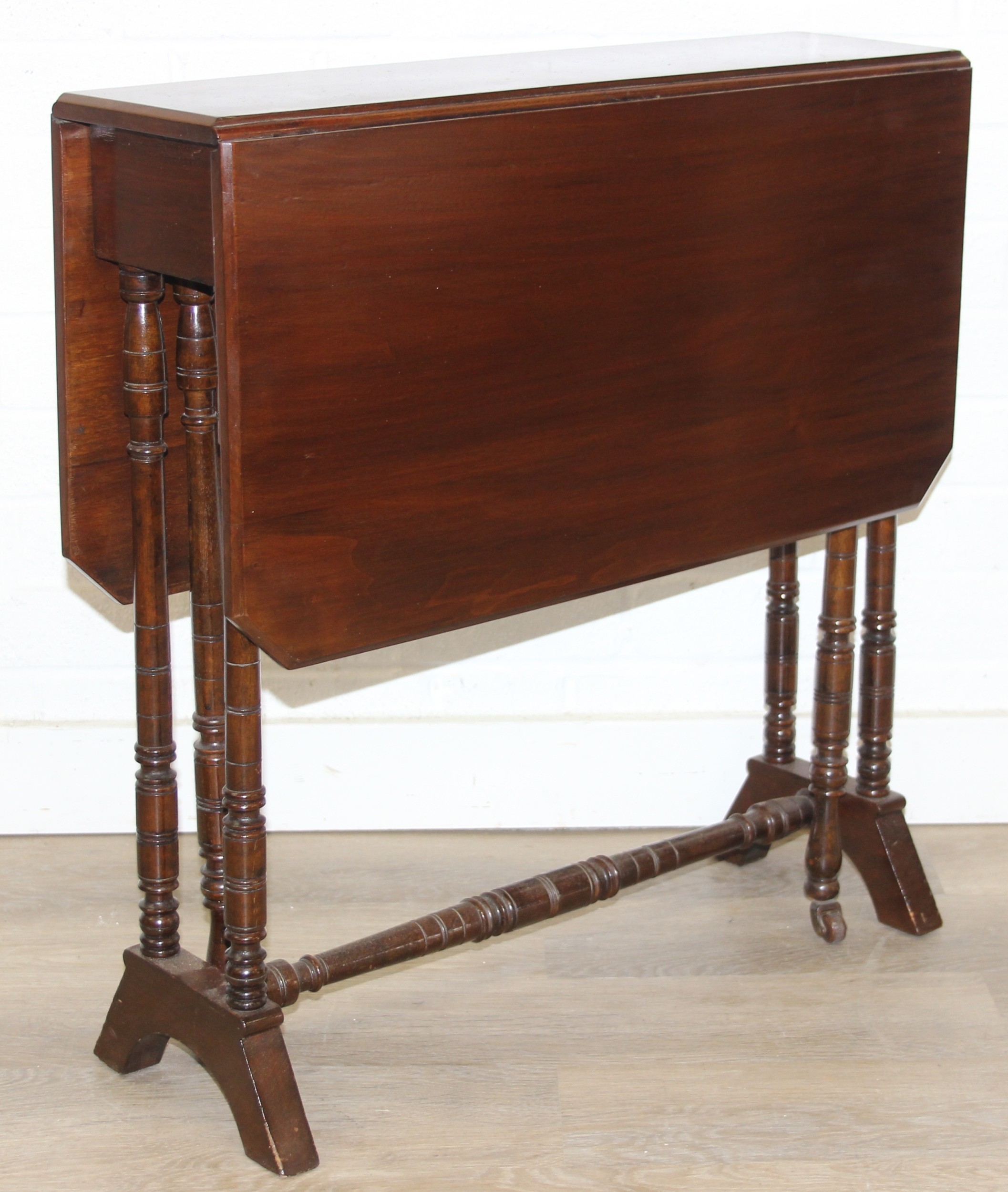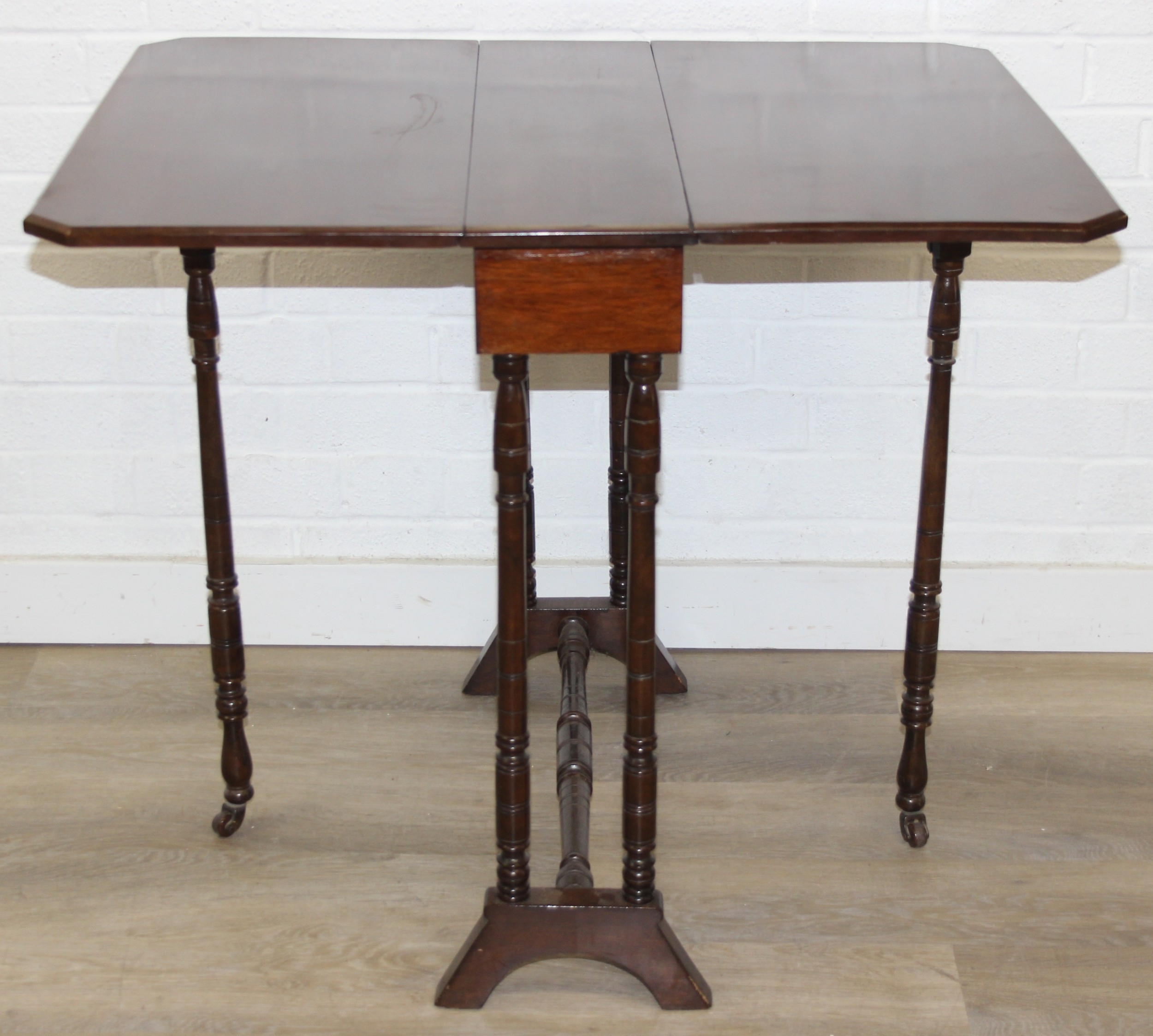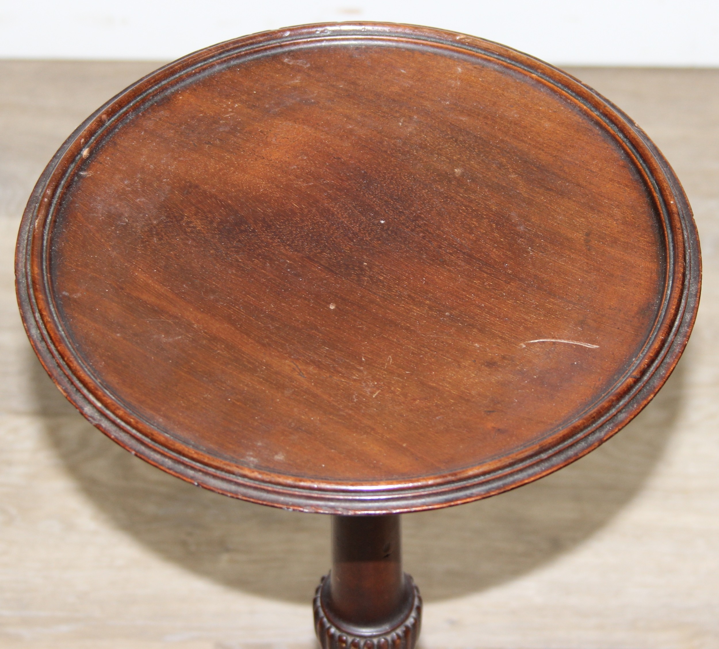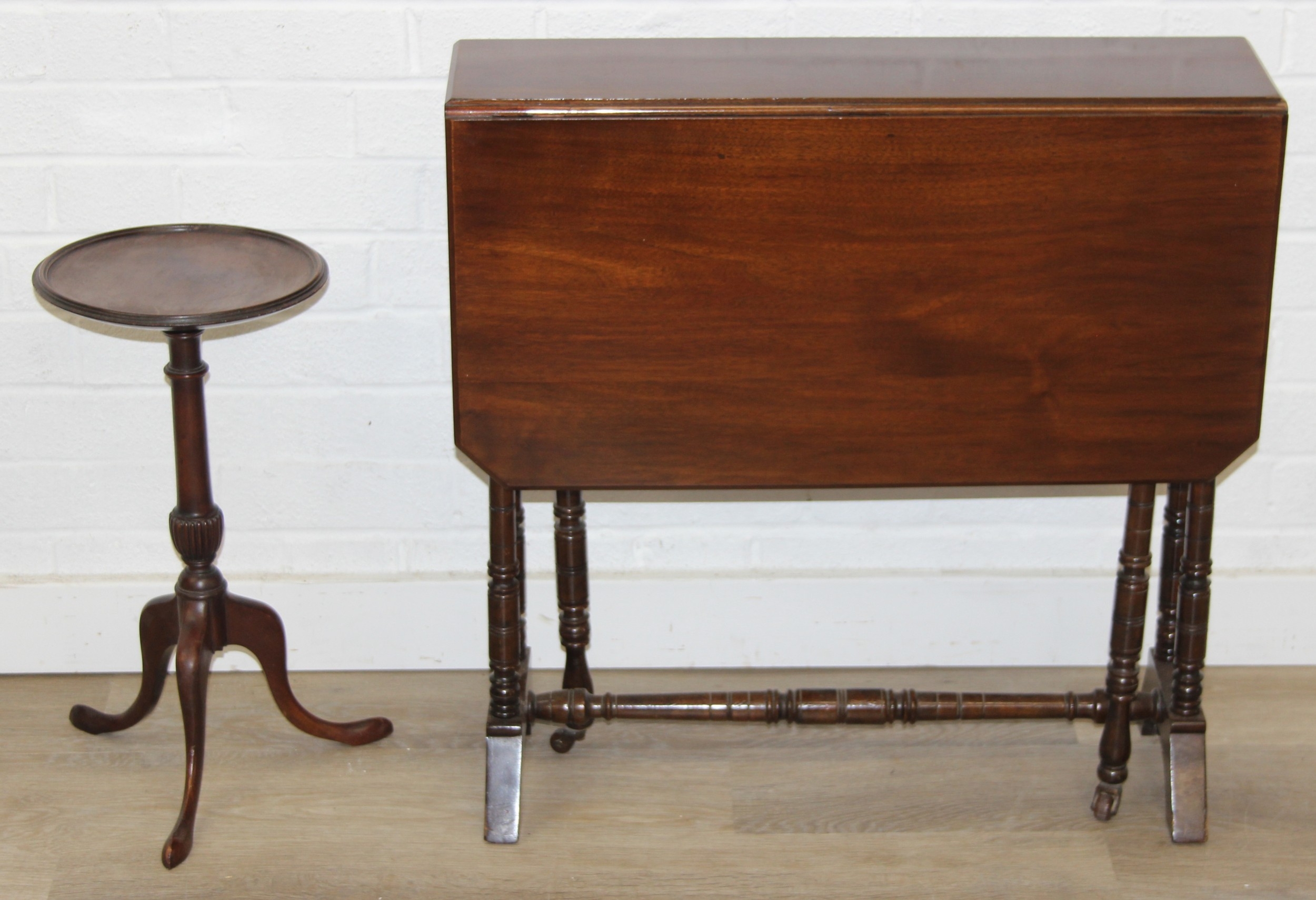 A small antique mahogany wine table with tripod base and an antique mahogany Sutherland dropleaf table of small proportions, 82cm x 68cm x 69cm when open [2]
